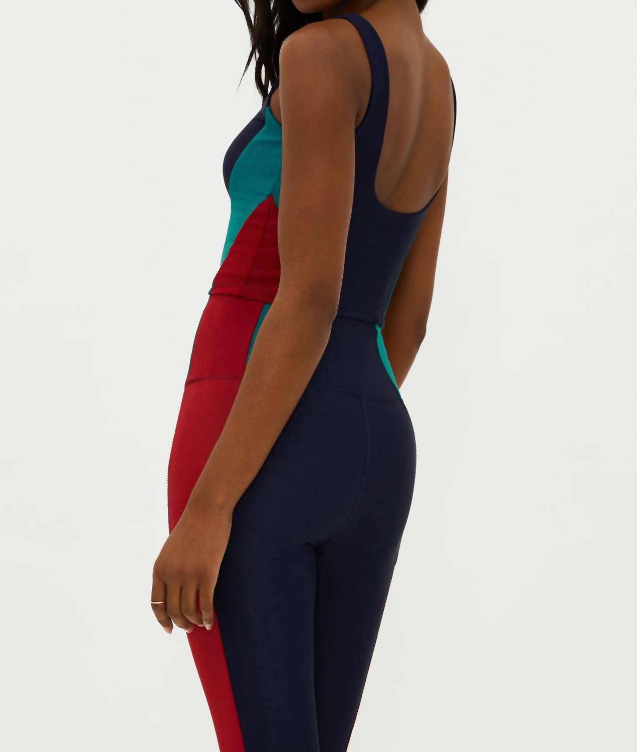 Embrace your inner rebel. Features a jersey textile with ribbed fabric for a comfortable and flattering fit. Complete with removable padded cups for customizable support. Crafted in a chic navy color. Maintained with a recommended hand wash.