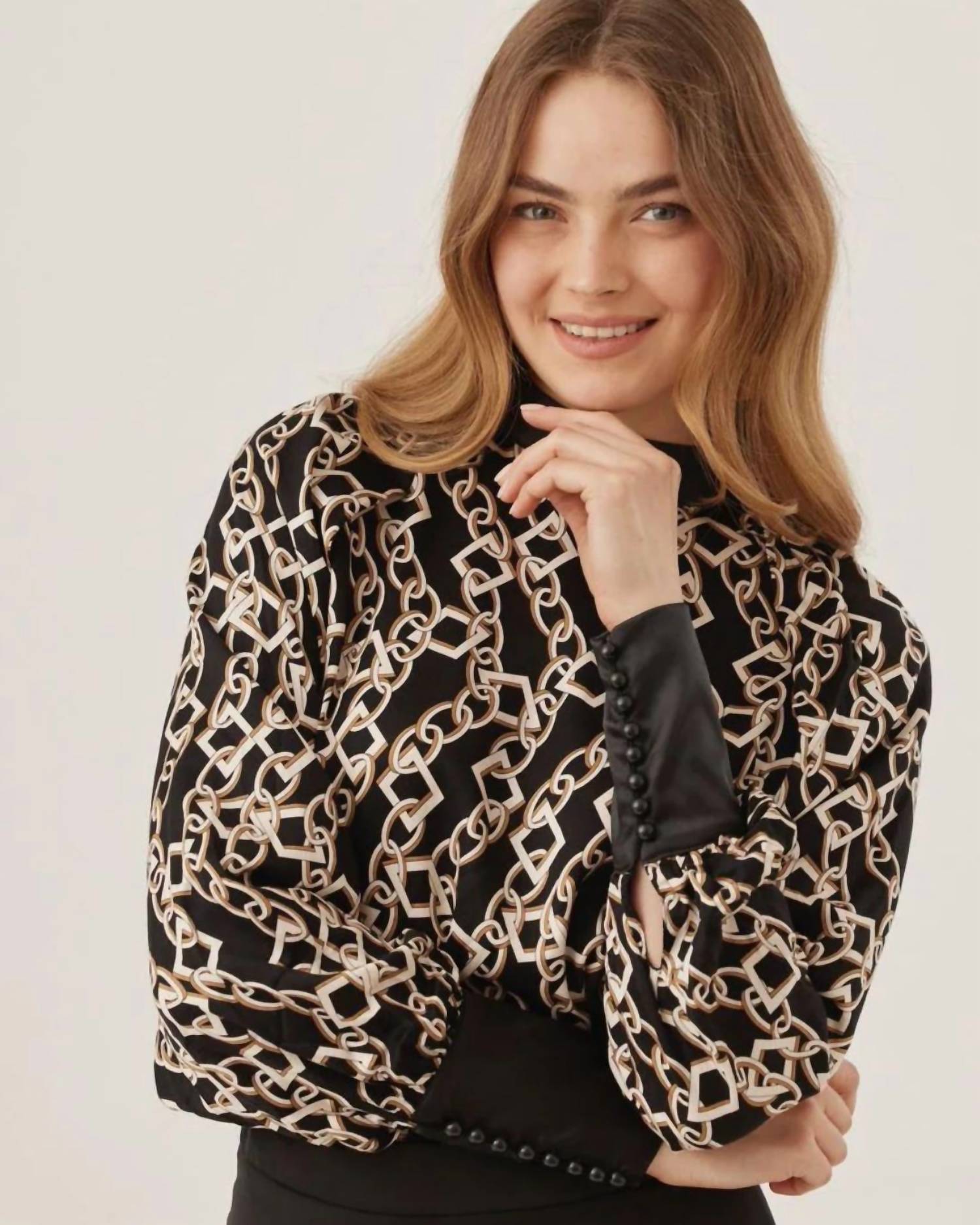 Elevate your wardrobe with the Long Sleeve Dressy Top by Beat, designed for both style and comfort. This women's top features long sleeves and a chic mockneck, making it perfect for any occasion from office wear to a night out. The patterned design in classic black complements its versatile appeal. Care instructions recommend dry cleaning to maintain the high quality materials used in this fashionable piece.