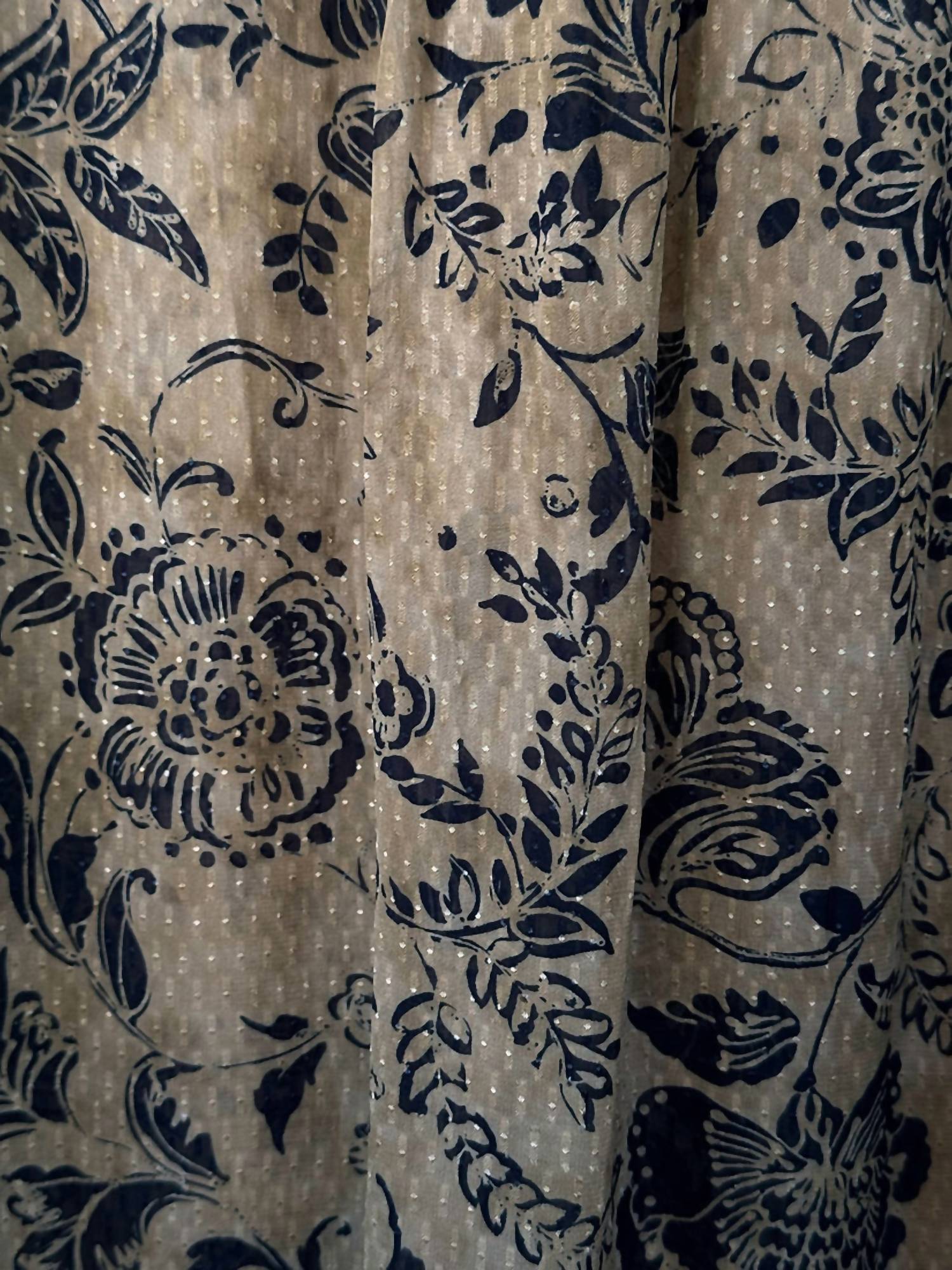 Signature Beate Heymann with contrast tie detail at neck. Long sleeves with elastic cuff. Little bit of Shimmer.