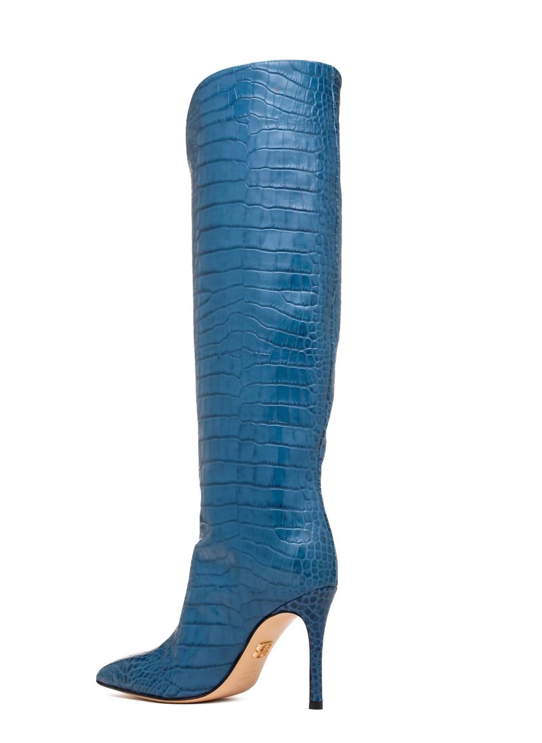 Saia com confiança e mostre seu gosto impecável com estas botas versáteis e estilosas. Seu estilo clássico fará você recorrer a elas estação após estação. Bota impressionante de cano alto com estampa de couro de crocodilo. Salto alto. Salto de 97 mm = 3,8". Palmilha acolchoada de 6 mm = 0,23". Antiderrapante.