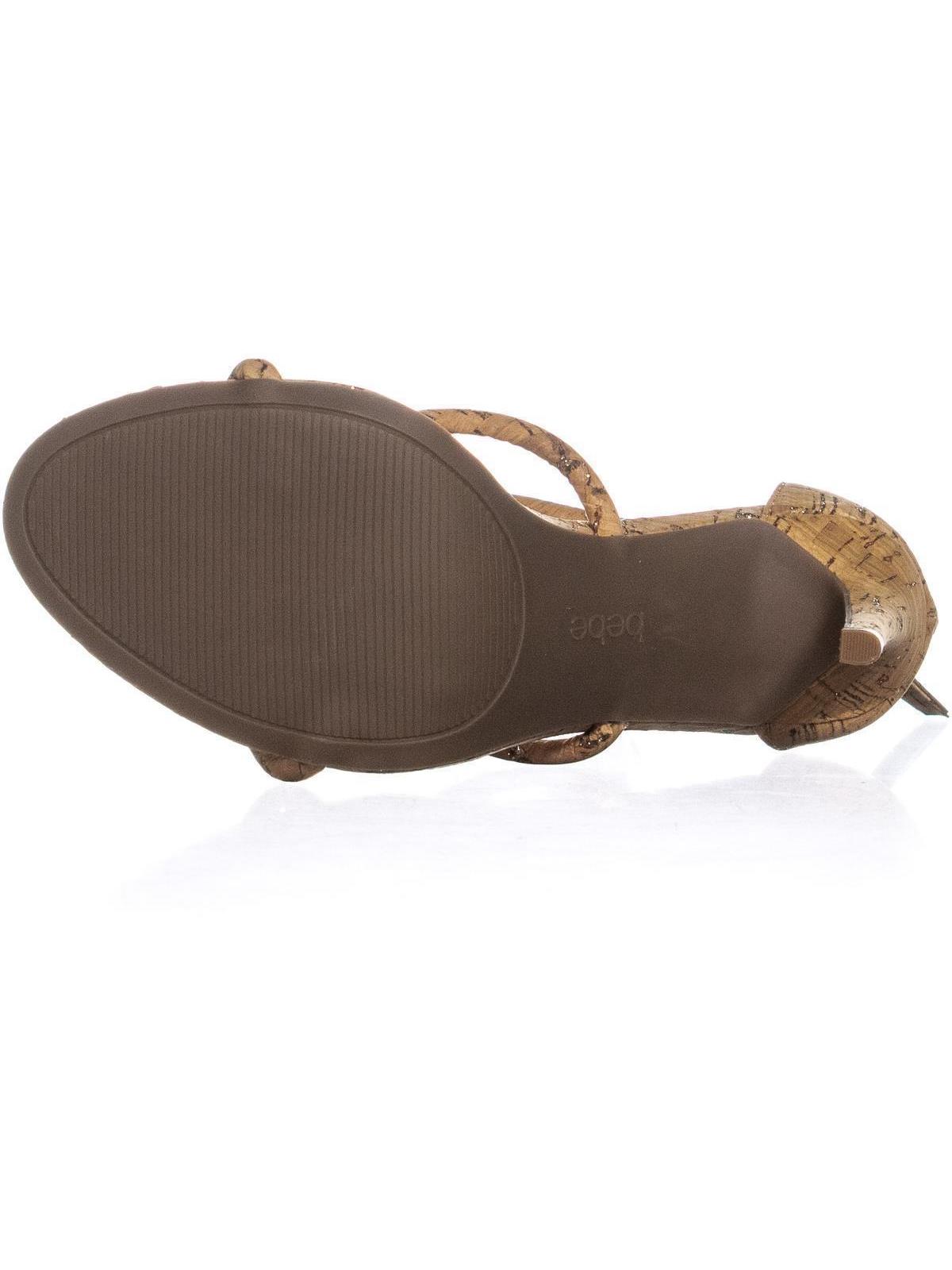 Sandálias de vestido femininas Bebe Berdine com tiras douradas e madeira, tamanho 10 M