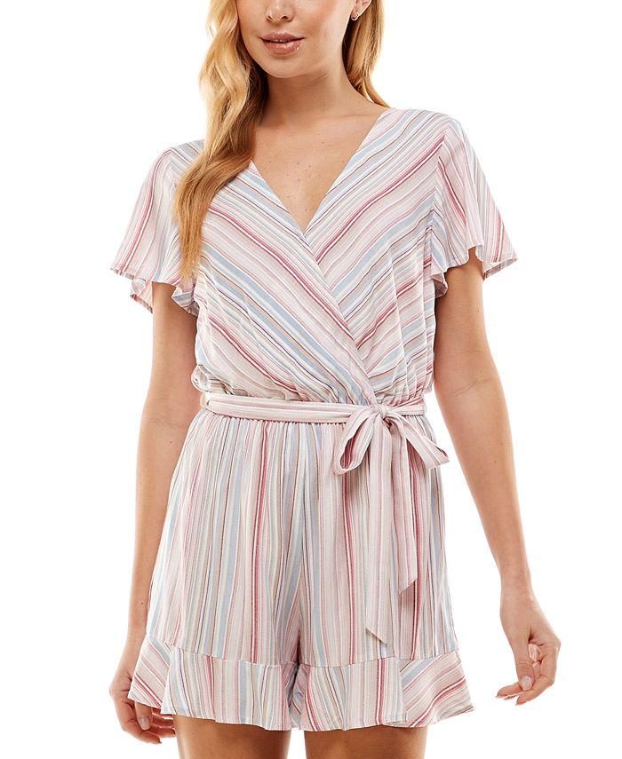 Macacão listrado com babados e bainha Bebop Junior, tamanho X-G