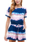 Uma maneira moderna de usar tie-dye? Dica: não é aquele moletom do ano passado. O macacão de manga curta da Bebop acerta em cheio | completo com cordões com contas. | Costura interna aprox.; 3 | Decote redondo; modelagem pull-on com botão na parte de trás do decote em forma de fechadura | Cós com cordão e cordões com contas | Bolsos no quadril | Poliéster/rayon/elastano