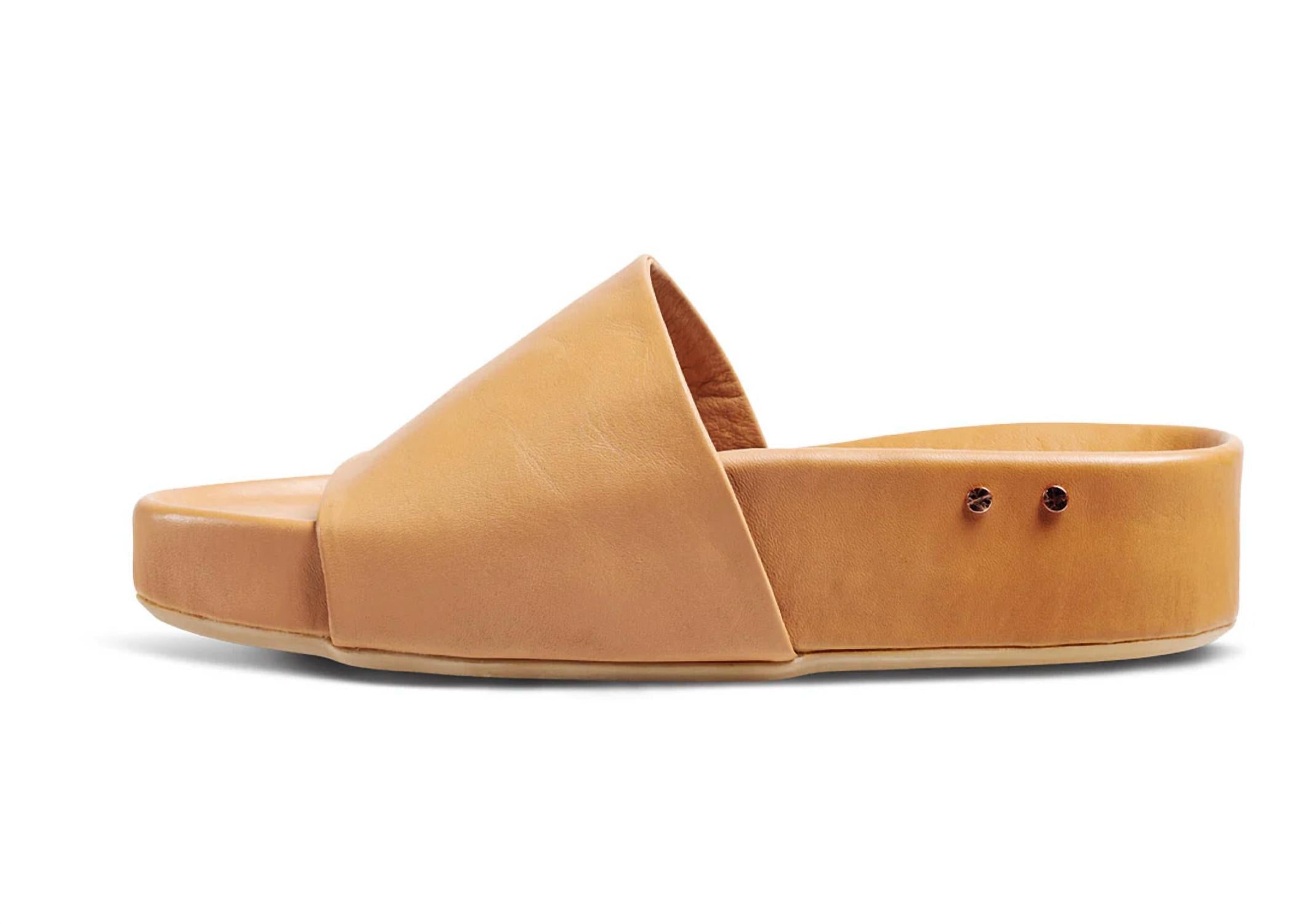 Step into stylish comfort with the Pelican Slide by Beek, an exquisite blend of honey-colored leather and sustainability. Featuring an open toe and flat heel, this platform sandal is crafted from 100% leather with a molded memory foam footbed for superior support and cushioning. The rubber outsole ensures a reliable all-surface grip, perfect for your boho chic vacation look this fall. Designed for women seeking both style and conscience, these slides run a little wide, so consider sizing down for a snug fit or up for a looser feel.
