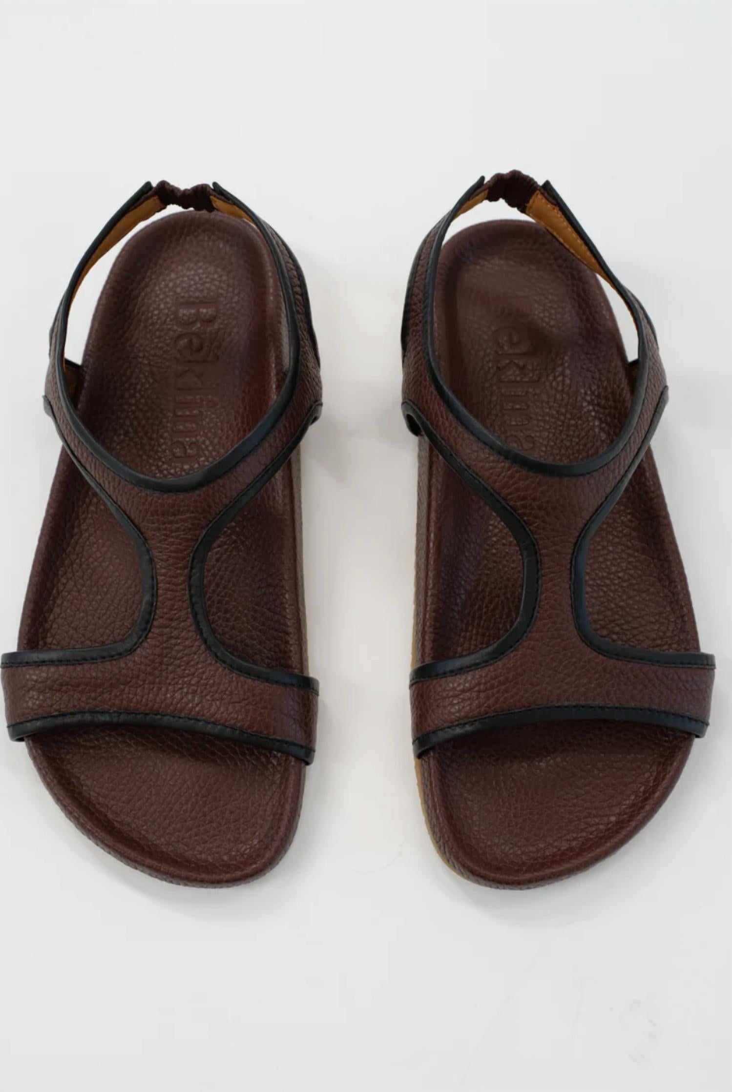 Step into comfort with the Gubi Sandal by Beklina, crafted in Castagna for the minimalist at heart. These women's shoes feature an open toe design and a flat heel, perfect for summer holiday parties. Composed of 100% soft Italian leather with a pebbled finish and a sustainably sourced natural tree sap rubber sole from Peru, these sandals promise exceptional quality and comfort. Note: They run generous, so consider sizing down if you are between sizes.