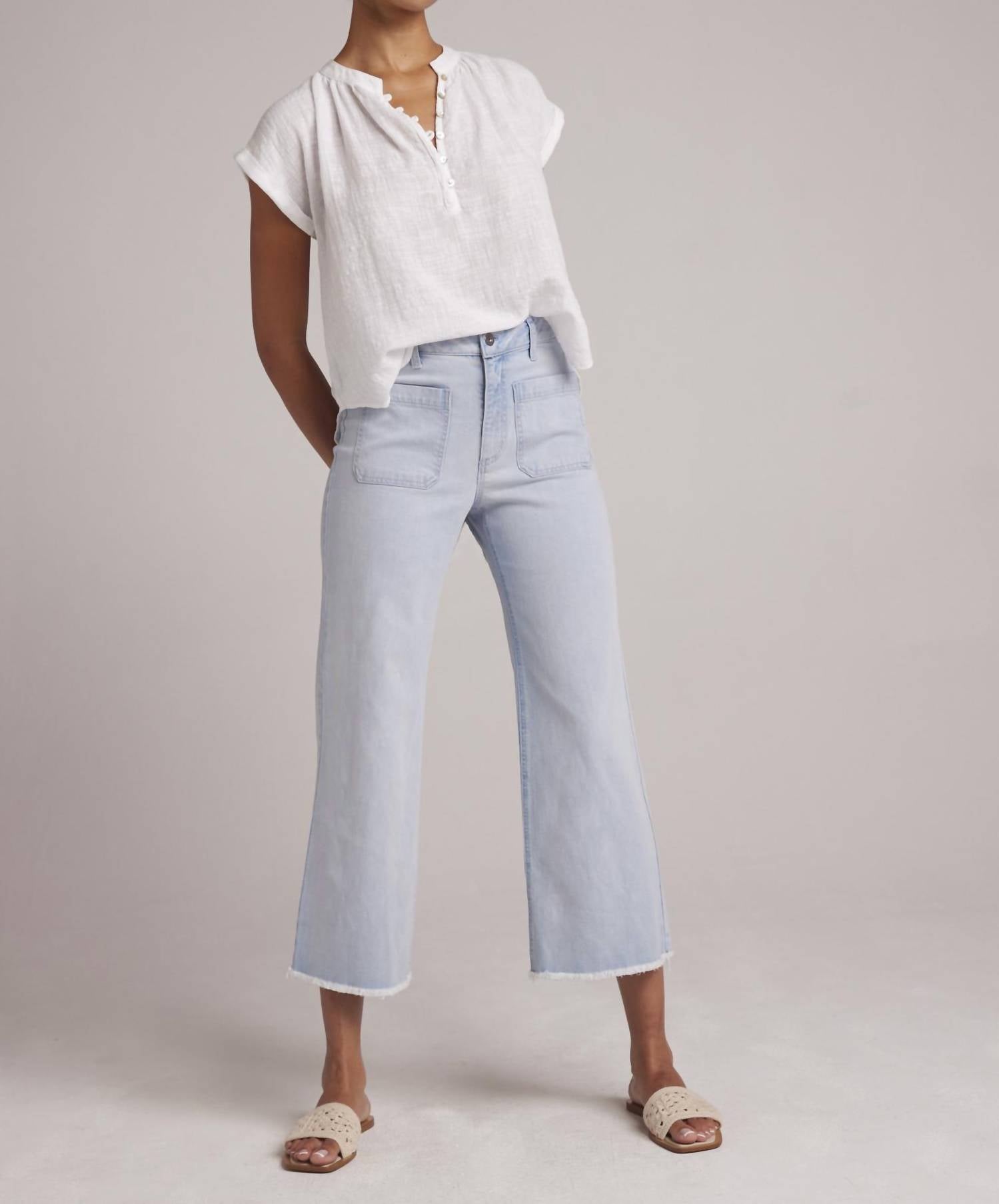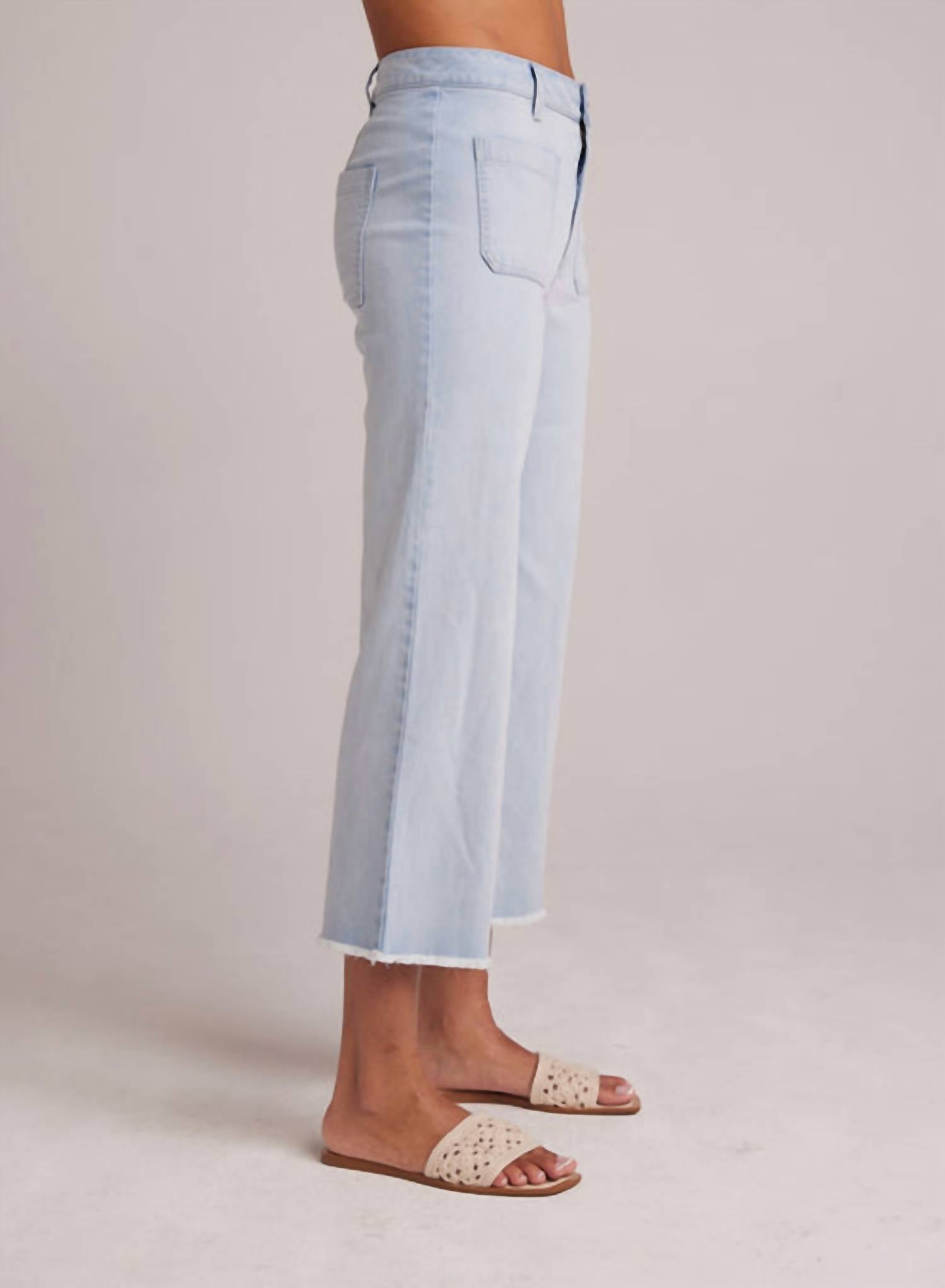 Abrace o estilo chique sem esforço com a Calça Jeans Curta Sarah Frayed Hem Wide Leg da Bella Dahl, na refrescante Lavagem Ocean Mist. Esta calça jeans feminina apresenta um caimento relaxado, com cintura alta e perna larga, além de uma costura interna curta de 65 cm para um toque moderno. Confeccionada em 64% TENCEL™ Lyocell, 35% algodão e 1% elastina, ela é macia e confortável, perfeita para qualquer ocasião. Com bainha desfiada estilosa, fecho de zíper e bolsos frontais e traseiros, ela é uma adição versátil ao seu guarda-roupa. Fabricada em Los Angeles, esta calça jeans é fácil de cuidar e pode ser lavada na máquina.