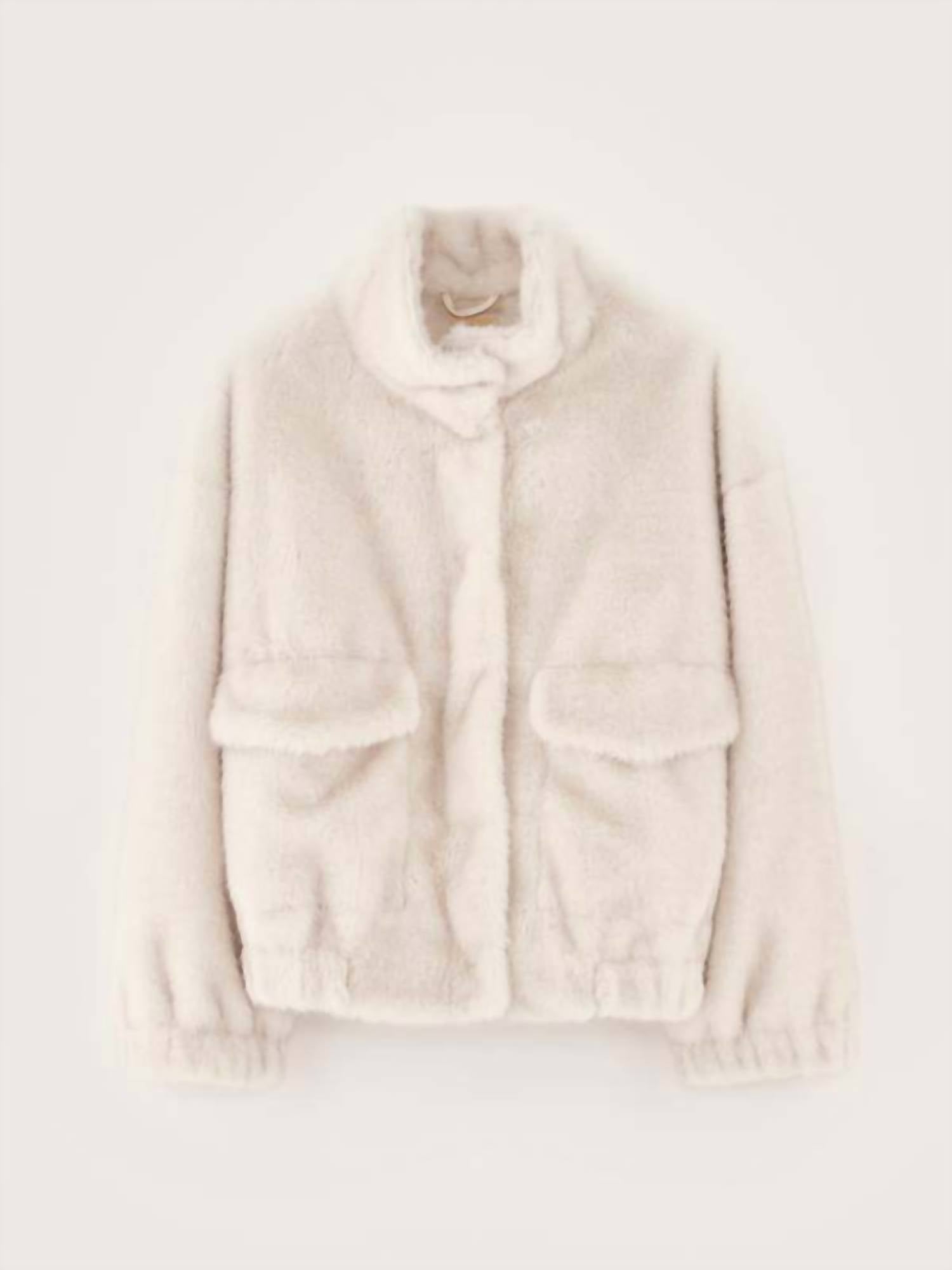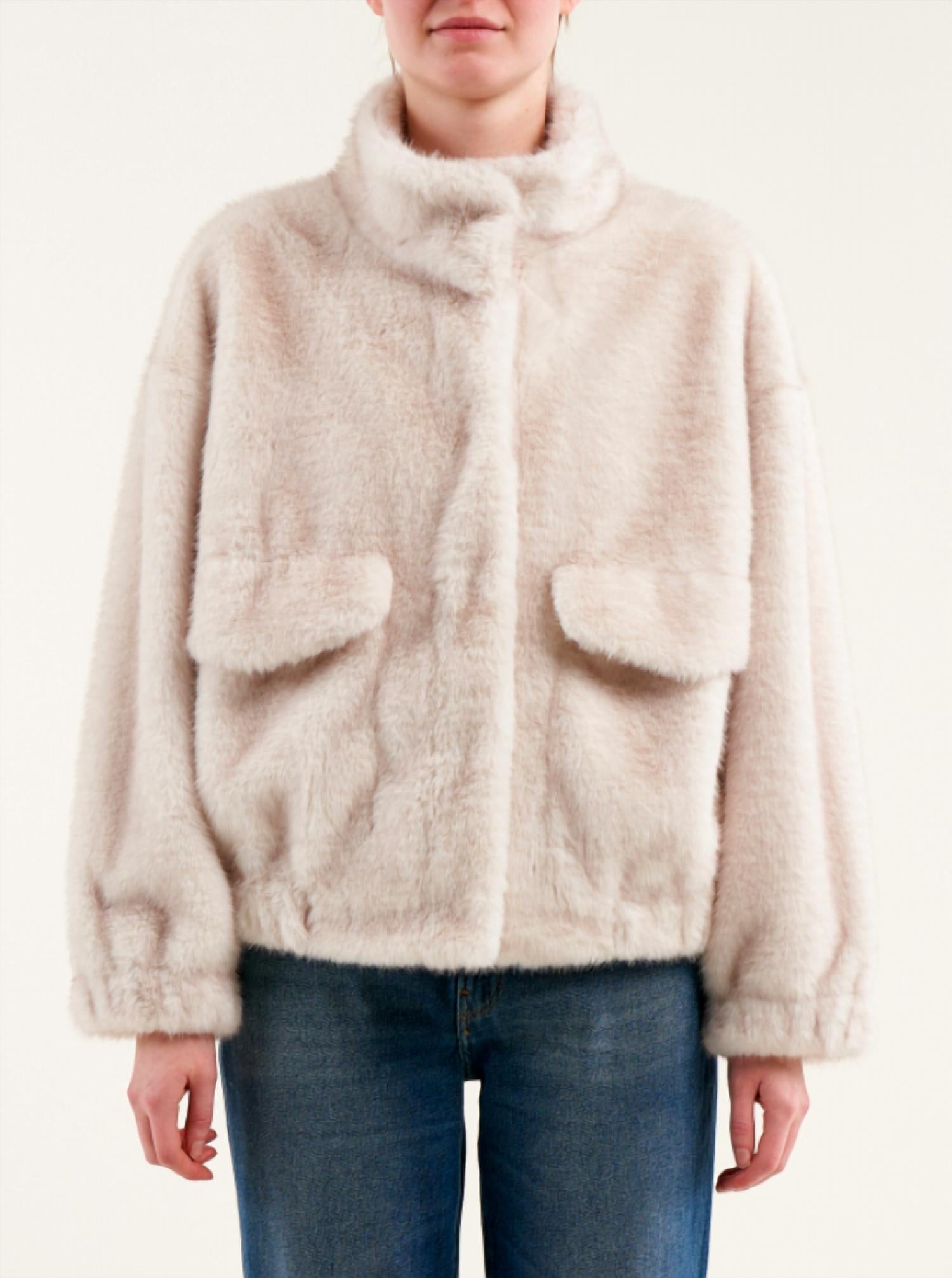 This utility jacket is the perfect combination of cool and feminine. Introducing the Bellerose Enora Jacket in Oatmeal, the perfect blend of coziness and chic style. This utility jacket features long elasticized sleeves and is crafted from plush faux fur material. Closure: Button closure. Care: Dry clean only. Whether you're traveling or celebrating New Year's Eve, this jacket is a winter must-have.