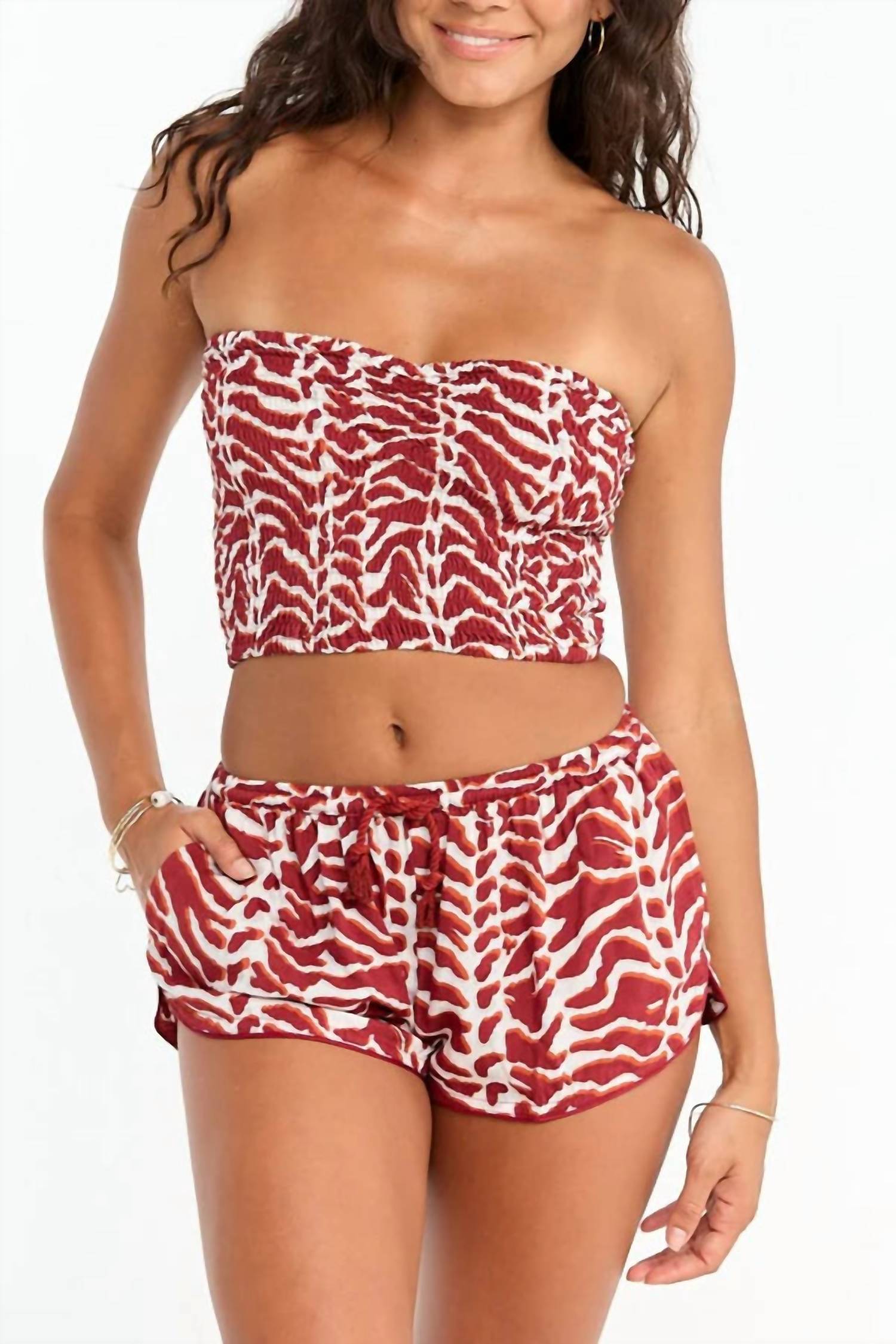 Este maiô fofo e elegante é perfeito para dar um mergulho na piscina, relaxar em praias ensolaradas e permanecer estilosa durante o próximo verão. Eleve o seu estilo para o dia na praia com o Mini Shorts Swim Moana da Benoa, confeccionado na cor Miter com 100% rayon ecológico. Feito à mão de forma ética na Indonésia e desenhado no Havaí, este mini shorts possui cós elástico de cintura média com cordão para amarração, proporcionando um ajuste personalizado. Praticidade e elegância se unem com bolsos e detalhes na bainha, tornando-o o complemento perfeito para o seu biquíni Benoa favorito. Disponível em modelo estampado, este shorts tem caimento fiel ao corpo, e a modelo veste tamanho P.