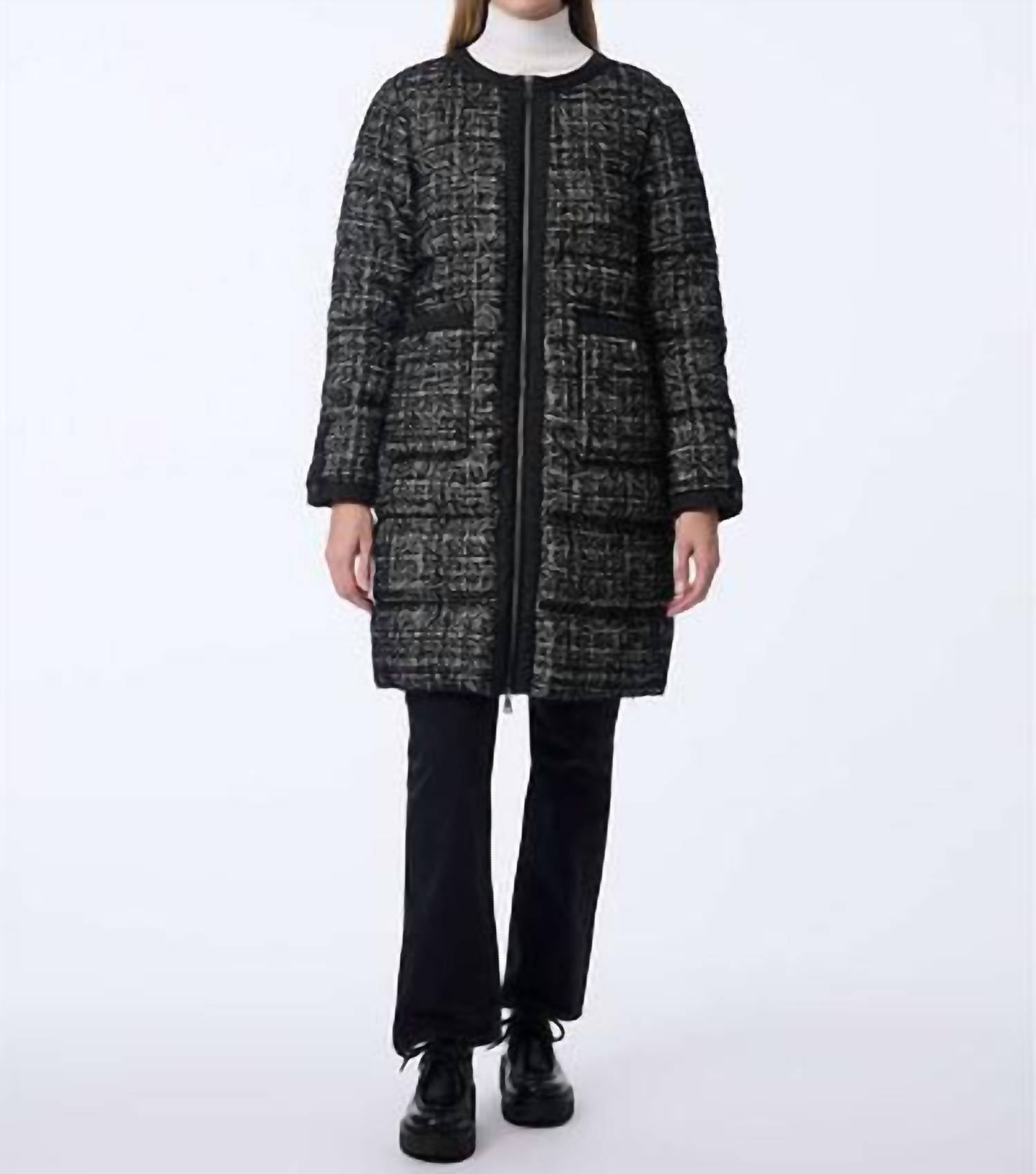 Você vai usar essa jaqueta puffer durante toda a temporada. Apresentamos o Casaco Tweed Zip da Bernardo, uma adição chique e texturizada à sua coleção de agasalhos em preto e branco atemporal. Este casaco possui mangas compridas e um prático fecho de zíper, perfeito para um estilo descomplicado. Confeccionado em poliéster durável, possui bolsos práticos e uma gola clássica. Fácil de cuidar, com instruções de lavagem à máquina e opção de secagem na secadora.