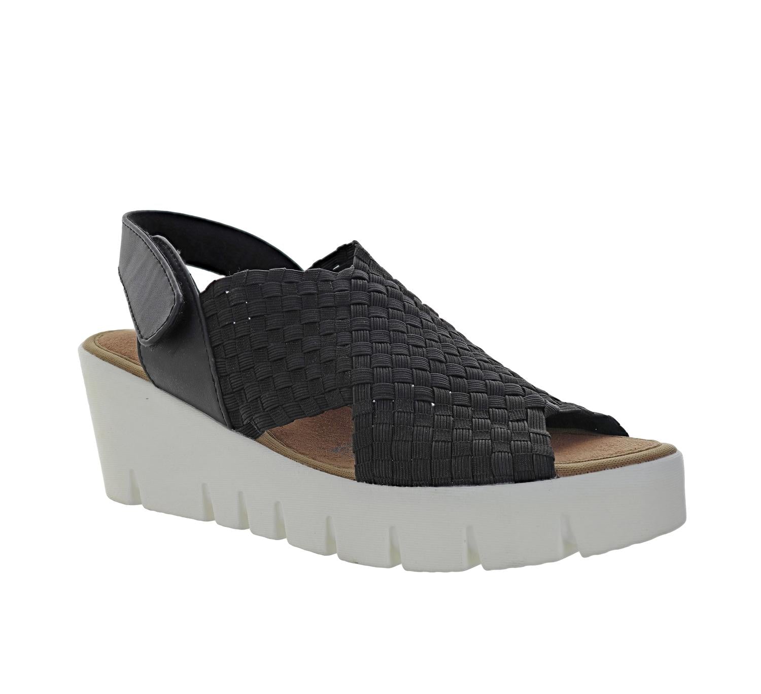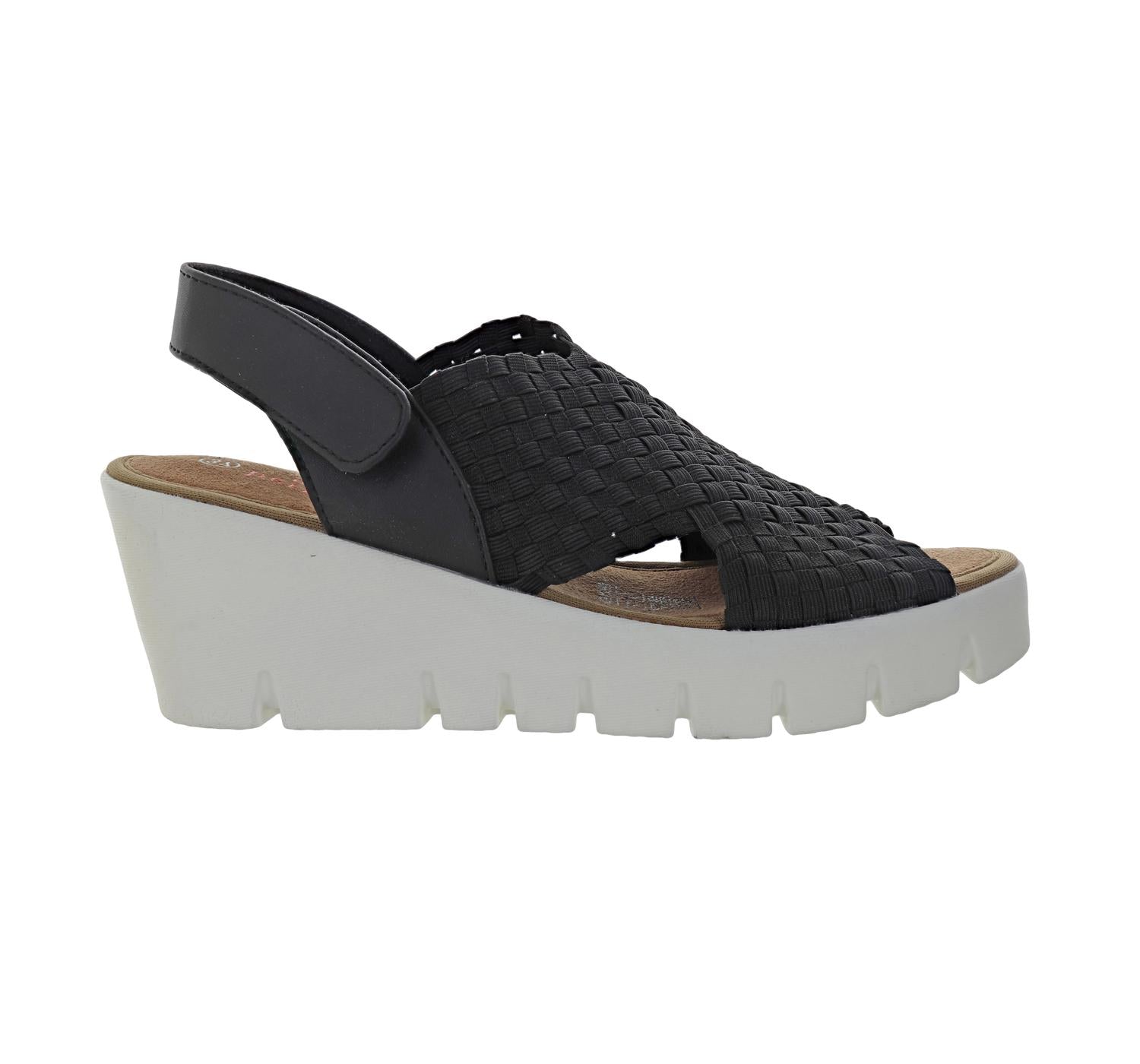 Esta sandália vai levar você do brunch ao jantar e a tudo o mais. A Sandália Anabela Venti Beatrice Feminina da Bernie Mev combina sofisticação e conforto com um design elegante em preto e creme. Esta sandália estilosa apresenta cabedal elástico trançado e tira ajustável em velcro para um ajuste personalizado. Ela conta com palmilha em espuma viscoelástica e solado em borracha sintética durável, proporcionando máximo conforto e estabilidade a cada passo. O salto anabela de 6,3 cm e a plataforma de 3,7 cm oferecem uma silhueta moderna, enquanto a ponta redonda aberta e o forro em tecido garantem conforto duradouro. Cuidados: Use um pano úmido ou uma escova macia para limpar e deixe secar naturalmente para manter a qualidade.