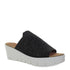 Introducing the Women's Venti Crystals Wedge Sandal by BERNIE MEV, a stunning addition to your summer wardrobe in classic black. Designed with an open-toe silhouette, these sandals feature a woven elastic upper that offers comfort and flexibility, adorned with rhinestone decorations for added sparkle. The slide-on style ensures easy wear, complemented by a fabric lining and memory foam footbed that provide comfort all day. Featuring a 2.5-inch wedge heel and 1.25-inch platform, these sandals boast a manmade outsole for durability, perfect for any occasion.