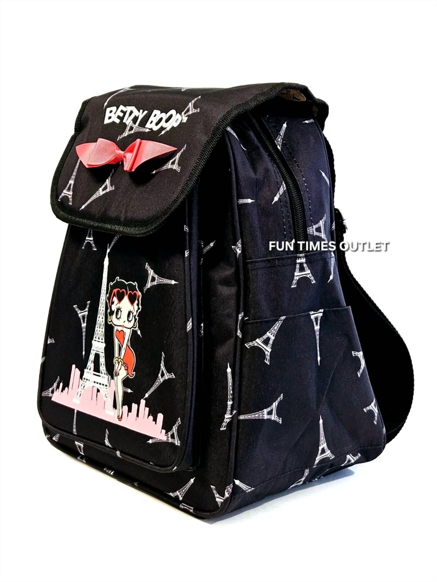 Introducing the Women's Mini Backpack by Betty Boop, a compact and stylish accessory perfect for any adventure. This backpack is crafted from durable polyester and measures 13" x 11" x 7", offering sufficient space for your essentials. Designed with a whimsical BN913#PR color scheme, this mini backpack is a standout piece in the collection.