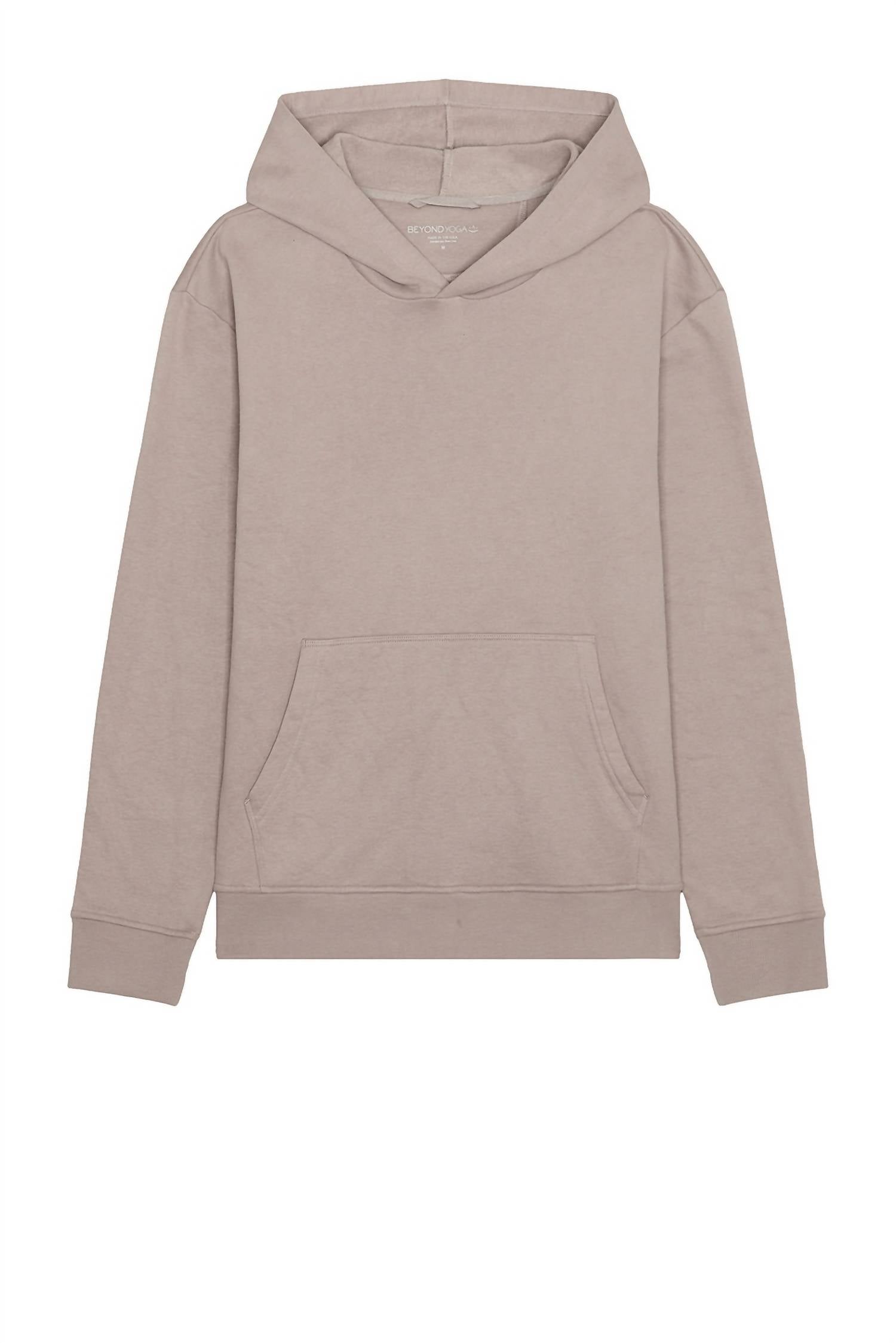 Discover the Unisex Every Body Hoodie by BEYOND YOGA, designed to provide universal comfort with a ribbed trim and front kangaroo pocket. This Birch-colored hoodie features long sleeves, dropped shoulders, and a hooded neckline with a front crossover for a relaxed yet stylish fit. Composed of 67% Cotton and 33% Polyester, it's crafted for a soft and ultra-comfortable wear. Closure: Pull-on. For easy maintenance, simply machine wash and tumble dry.
