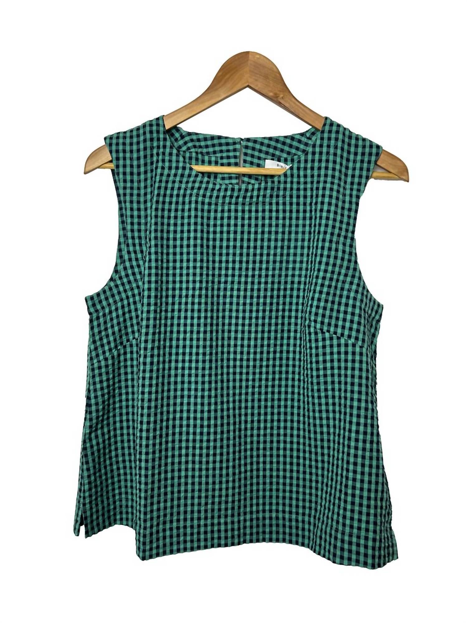Uma blusa atemporal que nunca sai de moda. Apresentamos o Top sem Mangas Pippa Gingham da BIBICO, um item essencial e chique para o verão, confeccionado em 100% algodão seersucker. Este top xadrez verde-oliva e branco apresenta um corte em A suave e corte quadrado, ideal para um caimento relaxado. Fabricado eticamente na Índia, apresenta um decote aberto com um charmoso fecho de botão nas costas. Perfeito para usar nas férias, combina perfeitamente com a Saia Jolene ou com suas calças e saias favoritas.