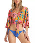 Top curto Billabong Sun Creek com bainha amarrada, amarelo/rosa, tamanho grande, feminino