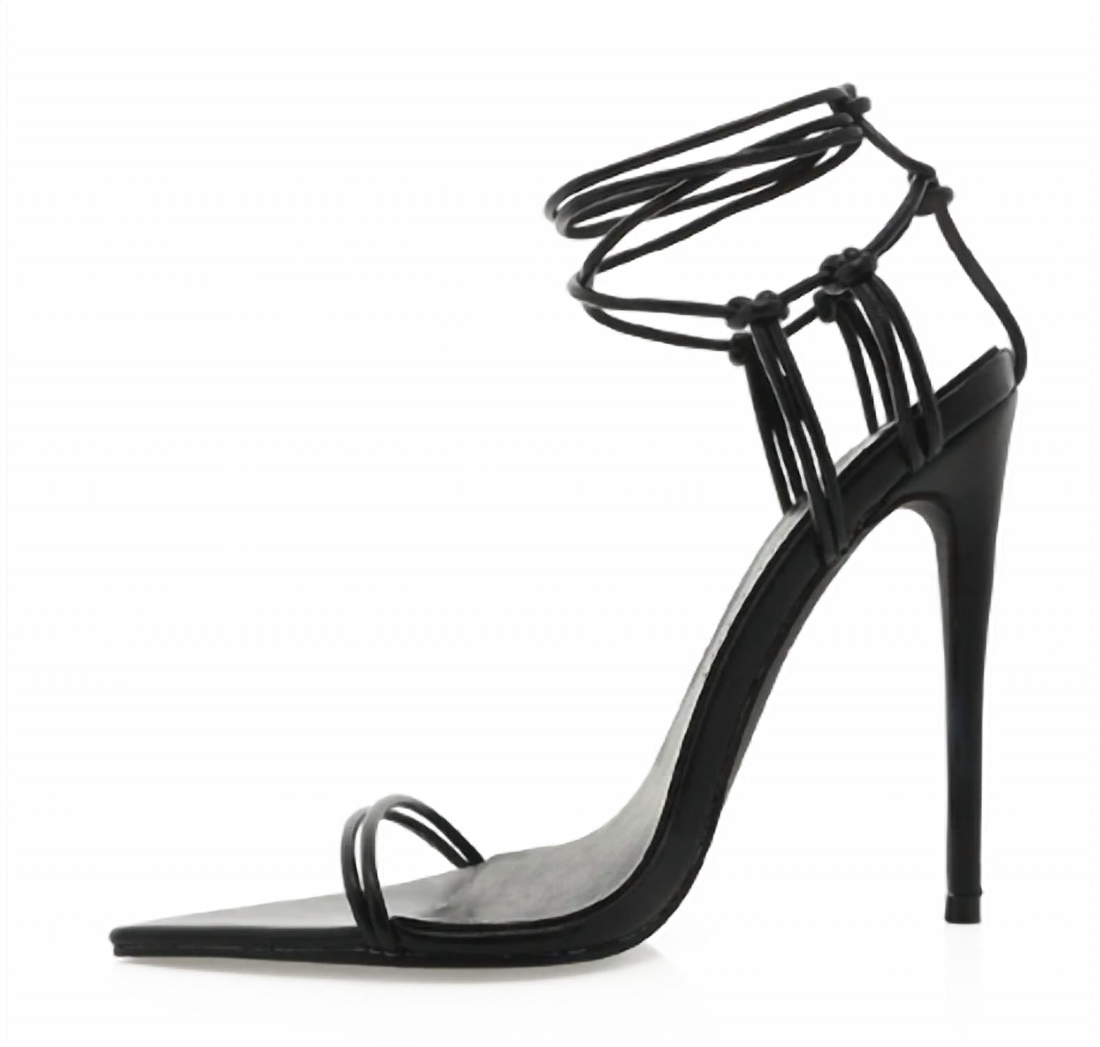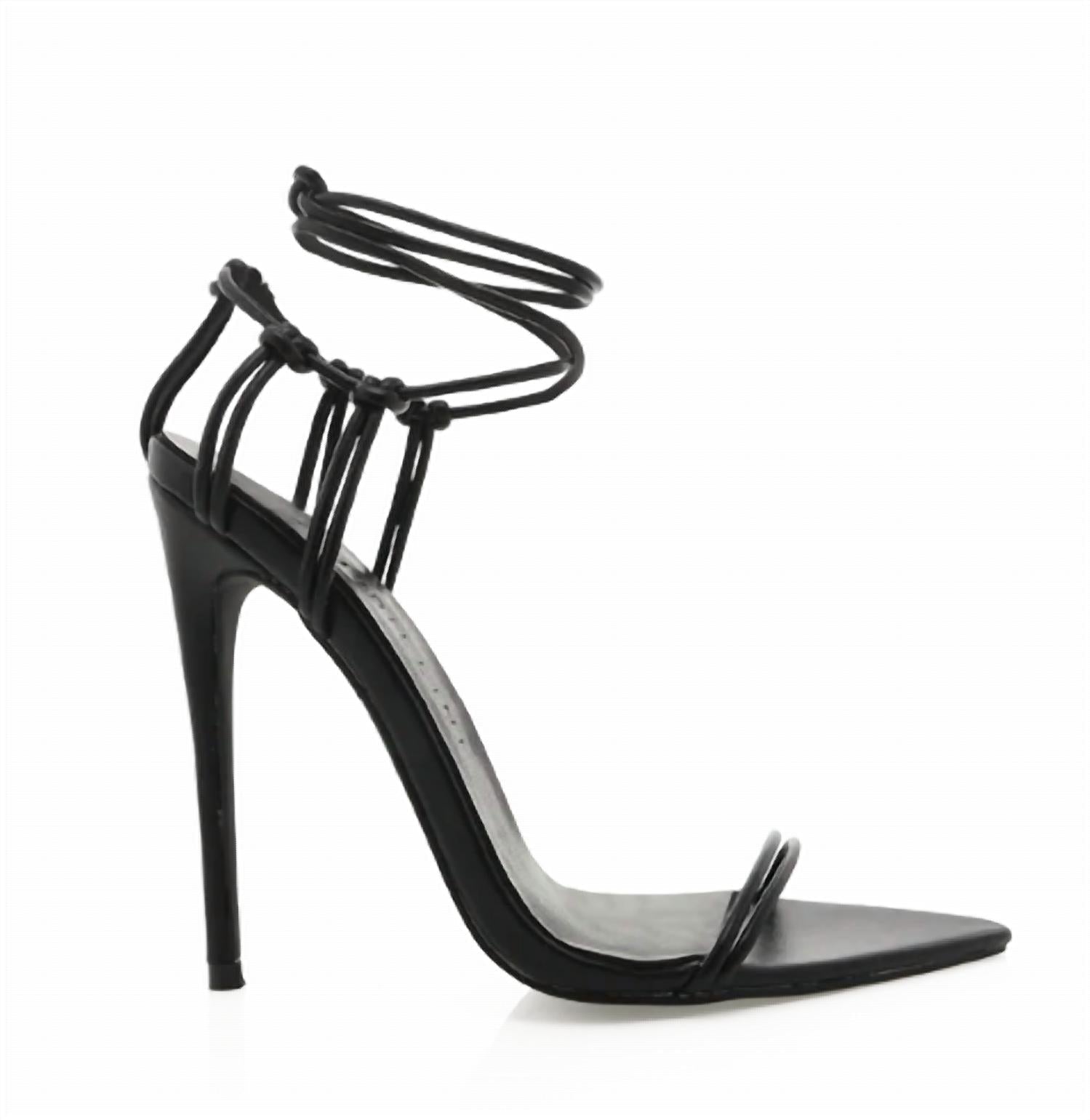 A altura perfeita para o dia e para a noite. Entre na sofisticação com o Salto Gisele Lace Up da BiLLiNi, um destaque em preto elegante, projetado para a mulher moderna. Este salto agulha alto, com 12,5 cm, apresenta um bico fino e aberto com tiras duplas tubulares. O atraente contraforte do calcanhar com nós é complementado por tiras de amarrar no tornozelo, tornando-o um complemento perfeito para um coquetel. Confeccionados em material sintético, estes saltos são a escolha certa para uma apresentação ousada.