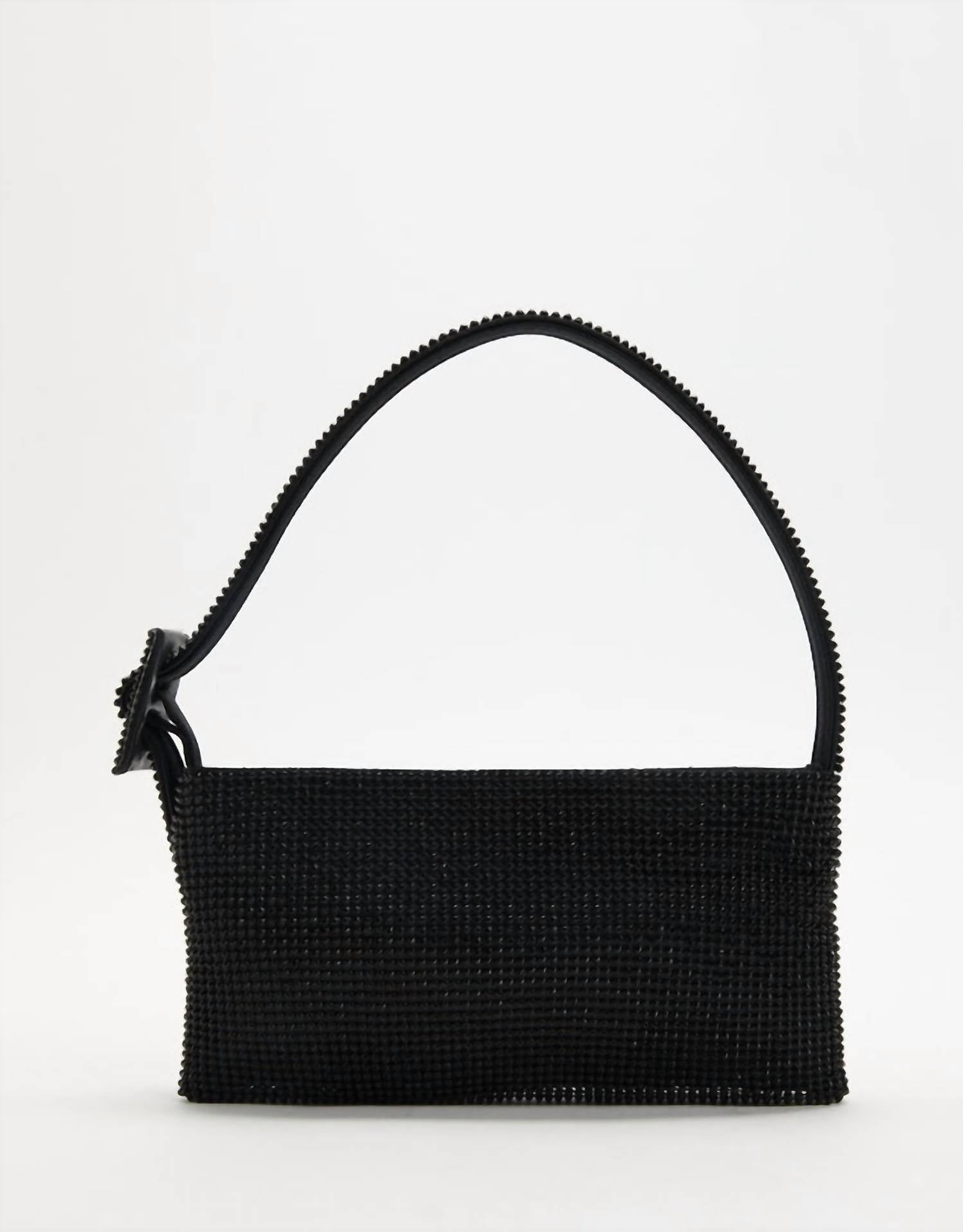 Introducing the Women's Kiz Shoulder Evening Bag by BiLLiNi, a stunning accessory designed to dazzle at any special occasion. This black diamante bag features a semi-structured shape, zip closure with silver hardware, and an adjustable shoulder strap for versatility. Its exterior dazzles with encrusted diamante crystals, while the inside offers a luxe silky satin interior with two compartments and a zip pouch for practicality. Dimensions: 12cm height x 24cm width.