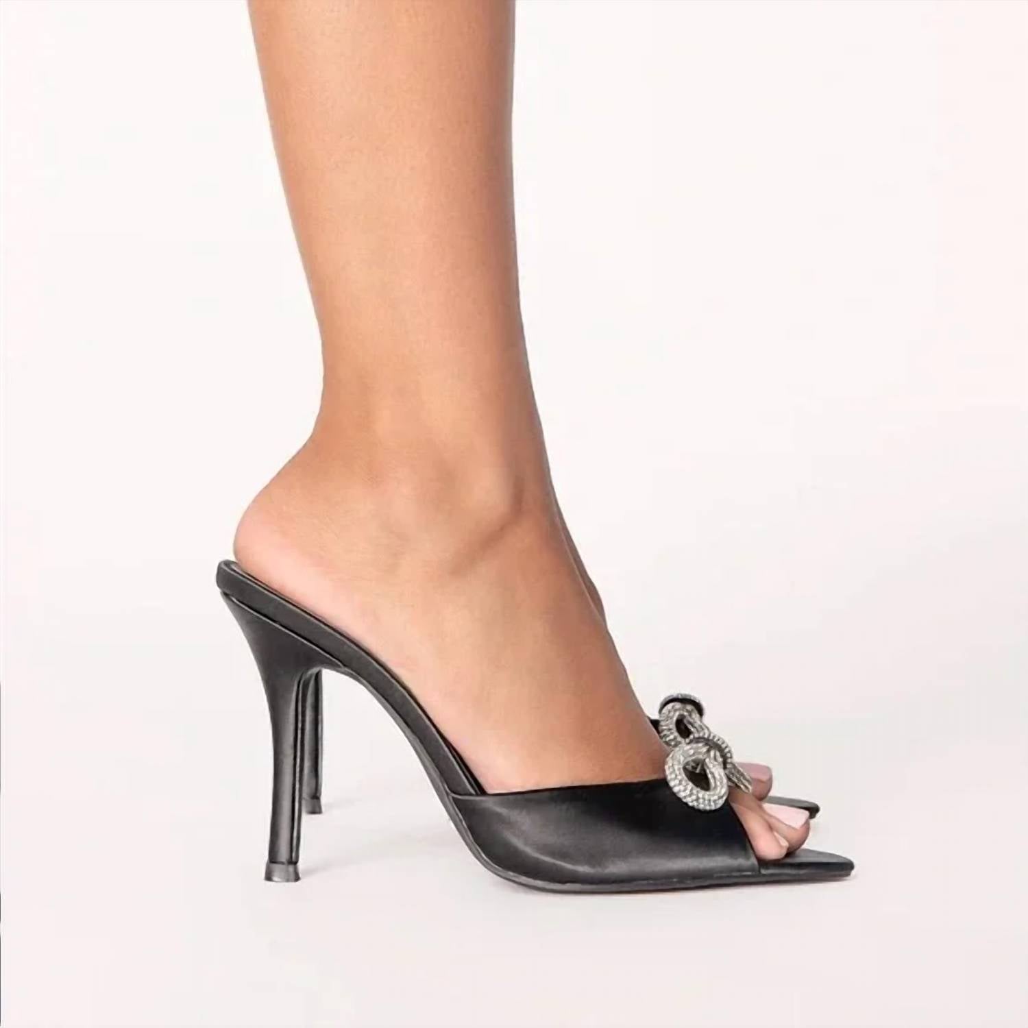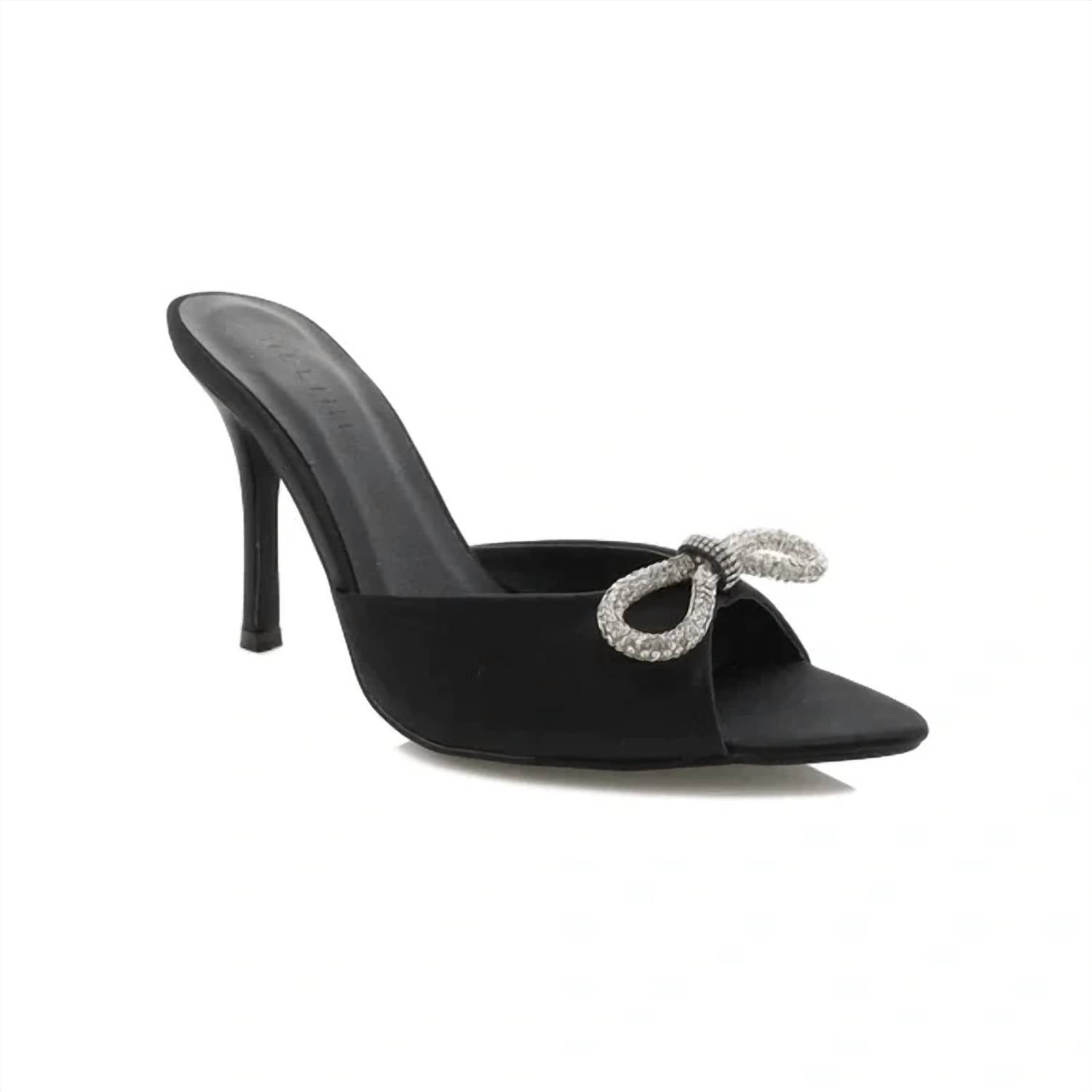 Entre em sintonia com a elegância com a Sandália Feminina Slip On Leilah Bow Heel da BiLLiNi, criada para eventos noturnos glamorosos. Com salto agulha alto de 9 cm e bico fino e aberto, esta sandália em cetim preto esbanja sofisticação e estilo. Embelezada com uma tira larga no cabedal e um deslumbrante laço de cristal adornado com um grande detalhe de diamante na ponta, ela garante que você roube os holofotes. Feitas com materiais sintéticos por toda parte, estas sandálias são perfeitas para adicionar um toque de luxo ao seu look de trabalho de primavera ou às festividades de Réveillon.