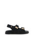 Step into effortless elegance with the Women's Lillian Boucle Sandals by Billini, your go-to for laidback luxury. These black sandals feature a flat footbed and a chunky exposed sole for ultimate comfort, complemented by an open round toe and thick twin straps on the upper. Gold faux buckle detailing adds a touch of sophistication to the adjustable Velcro-fastened twin and slingback ankle straps, ensuring a secure fit. Constructed with synthetic upper, lining, and outsole, these sandals are ideal for beach days or casual streetwear during the fall season.