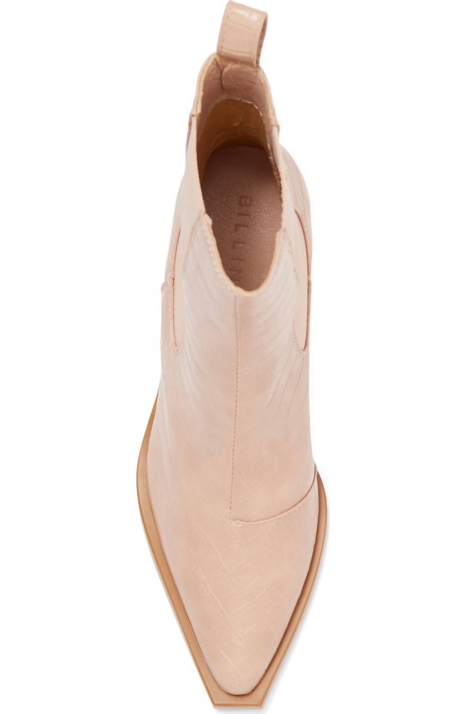 Upgrade your shoe game with these classic heeled boots, designed to merge sophistication and style. Comfortable enough for long days or a night out on the town. Elevate your style with the Ukaya Boots by BiLLiNi, featuring a chic pointed toe and crafted from rose clay croc-embossed faux leather. This women's Chelsea boot showcases dual inset elastic gores for a comfortable fit and a stacked block heel measuring 2.75 inches. Made for the modern adult, these heeled boots perfectly blend fashion and function with their synthetic upper, lining, and sole.