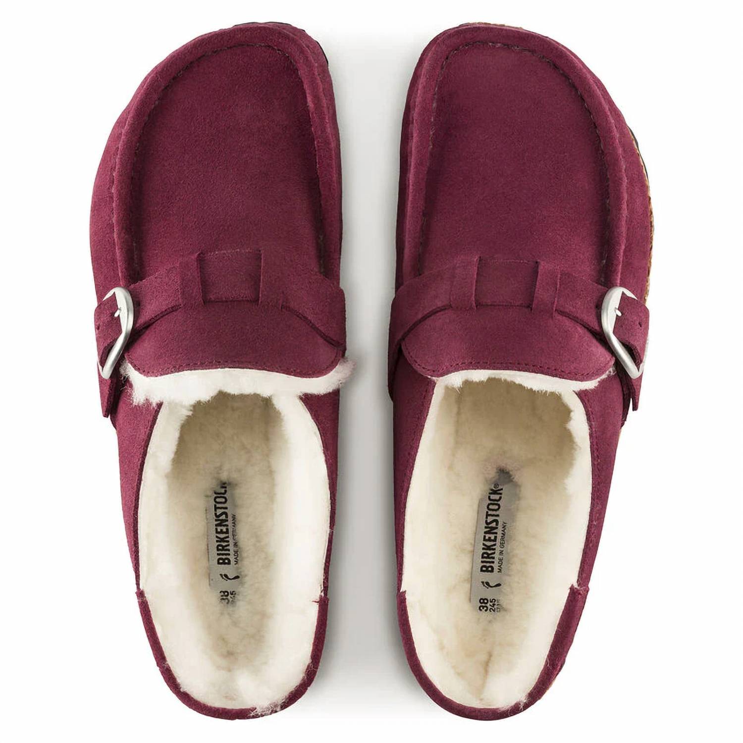 Apresentamos os tamancos unissex Buckley Shearling da Birkenstock, uma opção aconchegante e estilosa para as noites frias em um tom marrom intenso. Confeccionados com cabedal em camurça macia e forro em pele de carneiro legítimo, estes tamancos prometem conforto a cada passo. Apresentam palmilha anatômica de cortiça e látex e solado de EVA para suporte e estabilidade excepcionais. O design é complementado por bico arredondado e tira ajustável com fivela de metal para um ajuste personalizado.