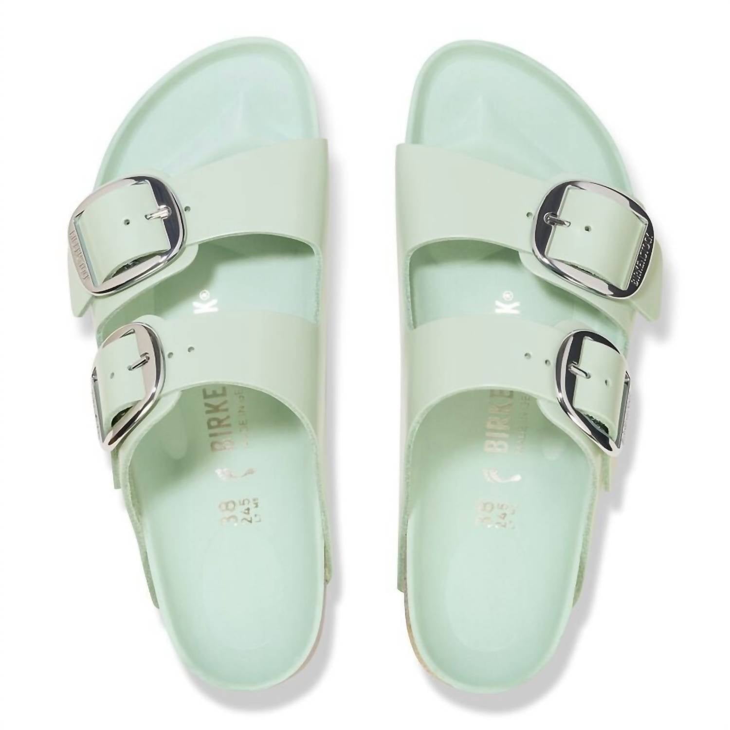 Apresentamos as Sandálias Femininas Arizona Big Buckle High Shine da BIRKENSTOCK, um design elegante e minimalista em High Shine Surf Green. Esta sandália icônica possui duas tiras ajustáveis com fivelas metálicas amplificadas e uma palmilha semi-requintada de cortiça e látex com formato anatômico para máximo conforto. O elegante cabedal em couro natural de alto brilho combina perfeitamente com o forro macio da palmilha em couro piumato, e o solado de EVA durável garante um uso duradouro. Orgulhosamente fabricadas na Alemanha, estas sandálias oferecem estilo sofisticado e conforto excepcional.