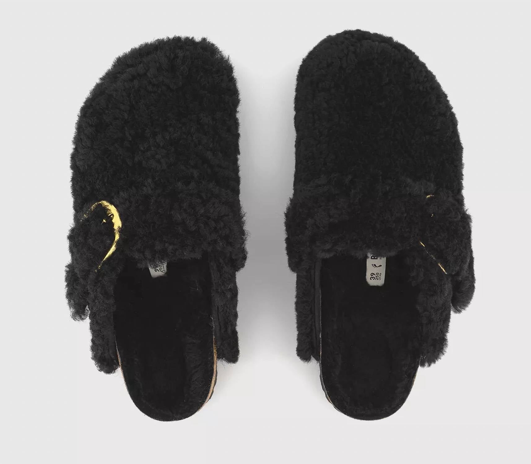 Calce-os e vá! Experimente o máximo conforto com os tamancos femininos Boston Big Buckle Teddy da BIRKENSTOCK, confeccionados para oferecer estilo e praticidade. Estes mules apresentam um cabedal aconchegante em pele de cordeiro estilo Teddy e um forro na palmilha, complementados por uma fivela de pino marcante para um ajuste seguro. A palmilha anatômica de cortiça e látex garante suporte durante todo o dia, enquanto o solado de EVA oferece durabilidade e flexibilidade. Fabricados na Alemanha, estes tamancos de bico redondo combinam luxo e praticidade na perfeição, ideais para uso durante todo o ano.