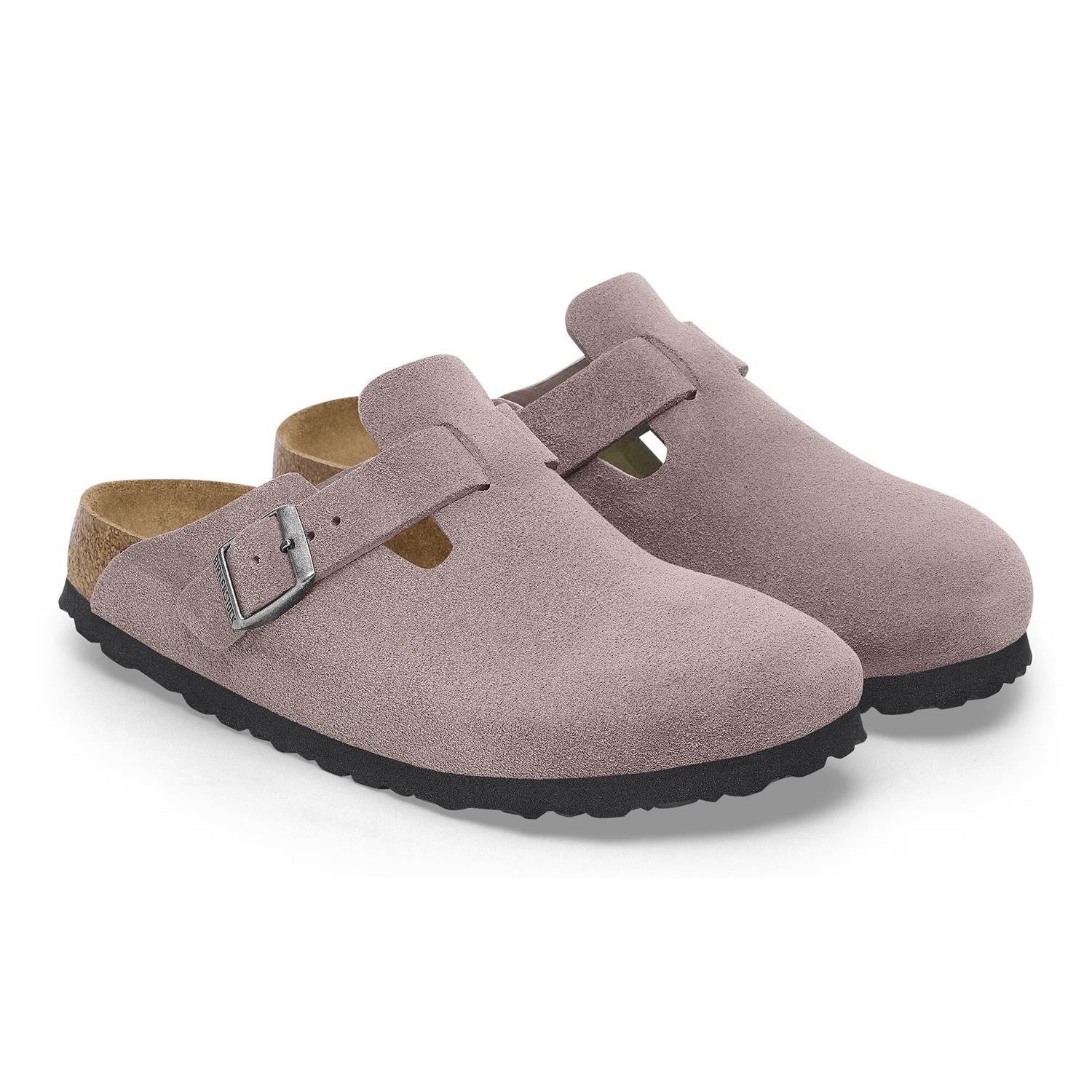 Entre em sintonia com o conforto dos tamancos femininos Boston Soft Footbed Suede da BIRKENSTOCK, em um sofisticado tom Faded Purple. Com cabedal em camurça para um toque luxuoso, estes tamancos apresentam um design de tira única com fivela de metal ajustável individualmente para um ajuste personalizado. O calçado inclui um forro de camurça sobre uma palmilha de cortiça e látex com formato anatômico, complementada por um solado de EVA para conforto e durabilidade duradouros. Estes tamancos versáteis são perfeitos para mulheres que buscam estilo e suporte.