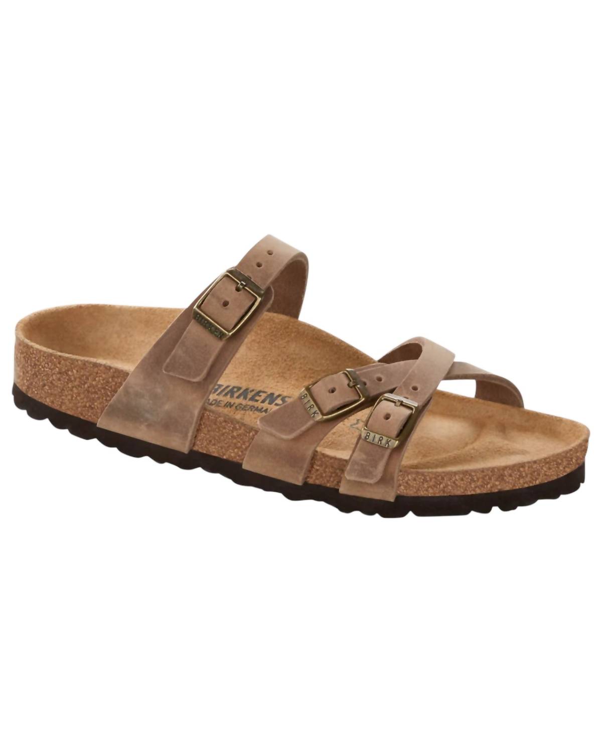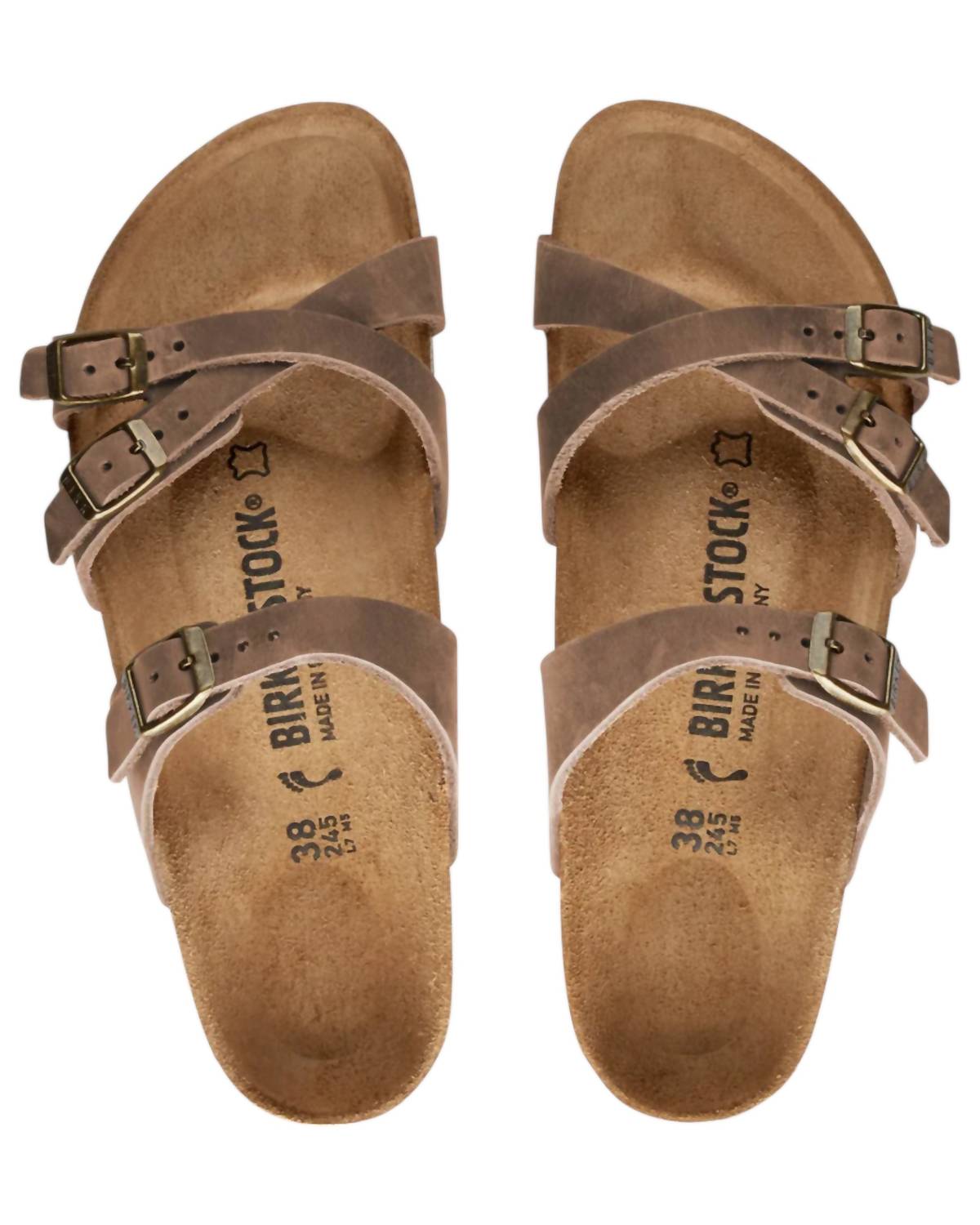 Apresentamos as Sandálias Franca Femininas da BIRKENSTOCK, uma escolha elegante confeccionada em couro nobuck oleado em um sofisticado tom preto. Estas sandálias apresentam tiras finas cruzadas, forro em camurça e solado em EVA, garantindo estilo e conforto durante todo o dia. Cuide delas limpando delicadamente o couro com um pano úmido e mantendo-as longe de umidade excessiva e fontes diretas de calor. Desenhadas com largura média e bico aberto, as sandálias de salto baixo garantem facilidade de uso em qualquer ocasião.