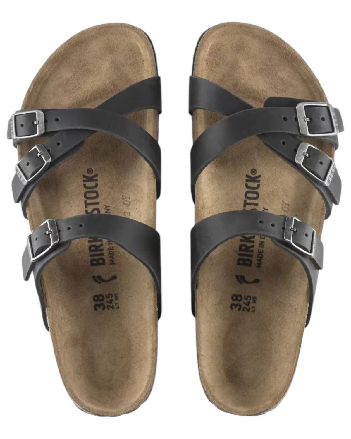 Apresentamos as Sandálias Franca Femininas da BIRKENSTOCK, uma escolha elegante confeccionada em couro nobuck oleado em um sofisticado tom preto. Estas sandálias apresentam tiras finas cruzadas, forro em camurça e solado em EVA, garantindo estilo e conforto durante todo o dia. Cuide delas limpando delicadamente o couro com um pano úmido e mantendo-as longe de umidade excessiva e fontes diretas de calor. Desenhadas com largura média e bico aberto, as sandálias de salto baixo garantem facilidade de uso em qualquer ocasião.