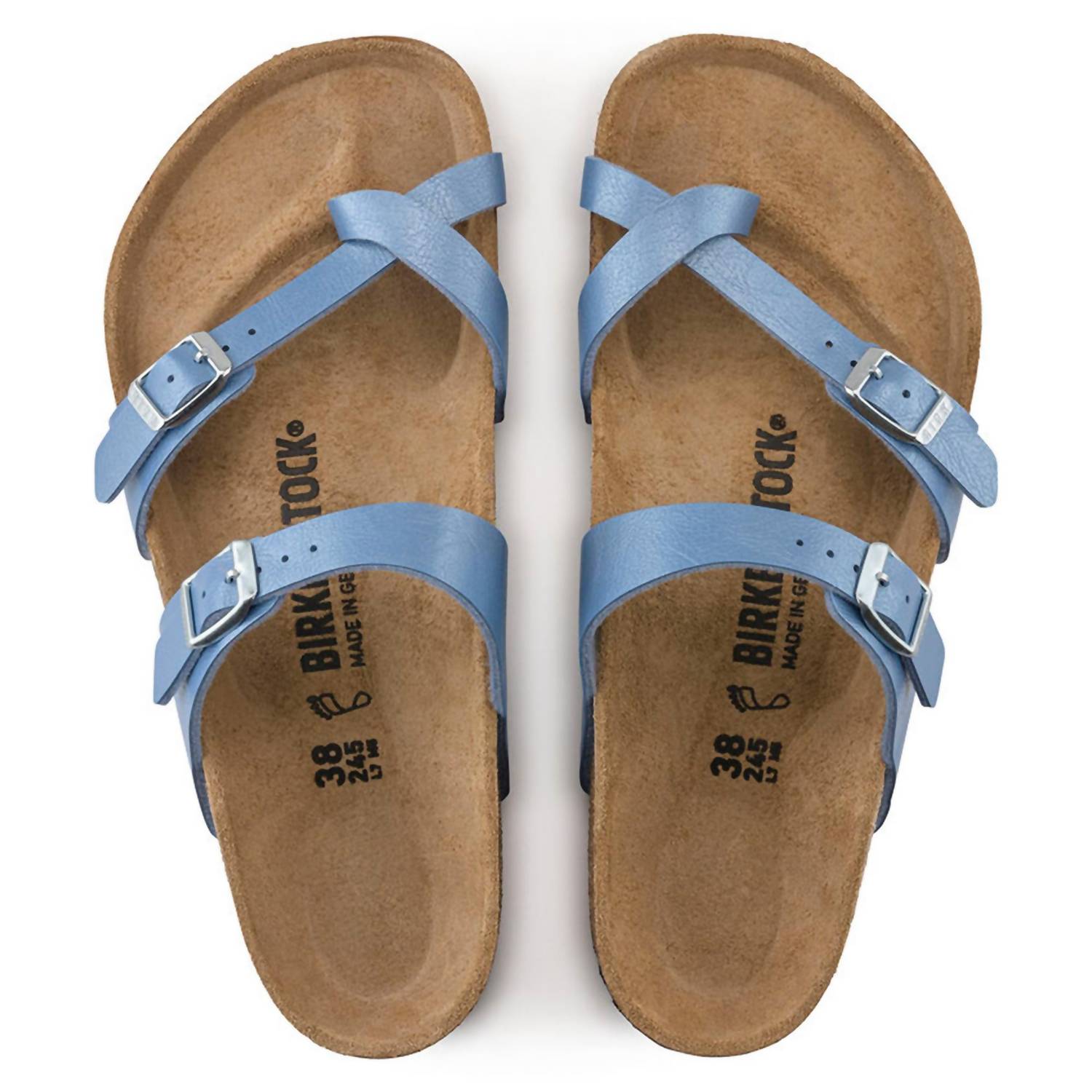 Esta sandália vai levar você do brunch ao jantar e a tudo o mais. Eleve sua coleção de calçados com a Sandália Feminina Mayari da Birkenstock, uma combinação perfeita de elegância e conforto. Com tiras ajustáveis ​​e cruzadas e design aberto nos dedos, esta sandália azul Riviera oferece suporte clássico com um elegante acabamento fosco. Confeccionada em Birko-Flor®, material resistente e suave para a pele, é fabricada na Alemanha para oferecer qualidade superior. Ideal para quem busca beleza e funcionalidade em seus calçados.