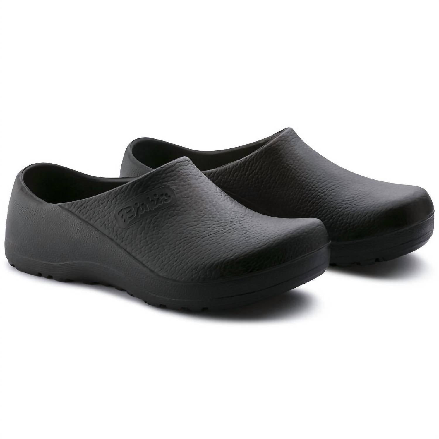 Vestidos esvoaçantes, calças cropped e até macacões... esta sandália combina com todos eles! As sandálias femininas Profi Birki da BIRKENSTOCK são projetadas para tração e estabilidade ideais em ambientes de trabalho exigentes. Com salto alto e parte frontal estendida, estas sandálias promovem o movimento natural do pé, ideal para longas horas em hospitais, cozinhas e na indústria alimentícia. Confeccionadas com sola de PU antiderrapante, elas apresentam um desempenho excepcional em superfícies lisas. Estas sandálias resistentes a óleo e graxa são fáceis de limpar, laváveis ​​até 80°C e possuem palmilha de PU removível e desinfetável, demonstrando sua praticidade e propriedades higiênicas.