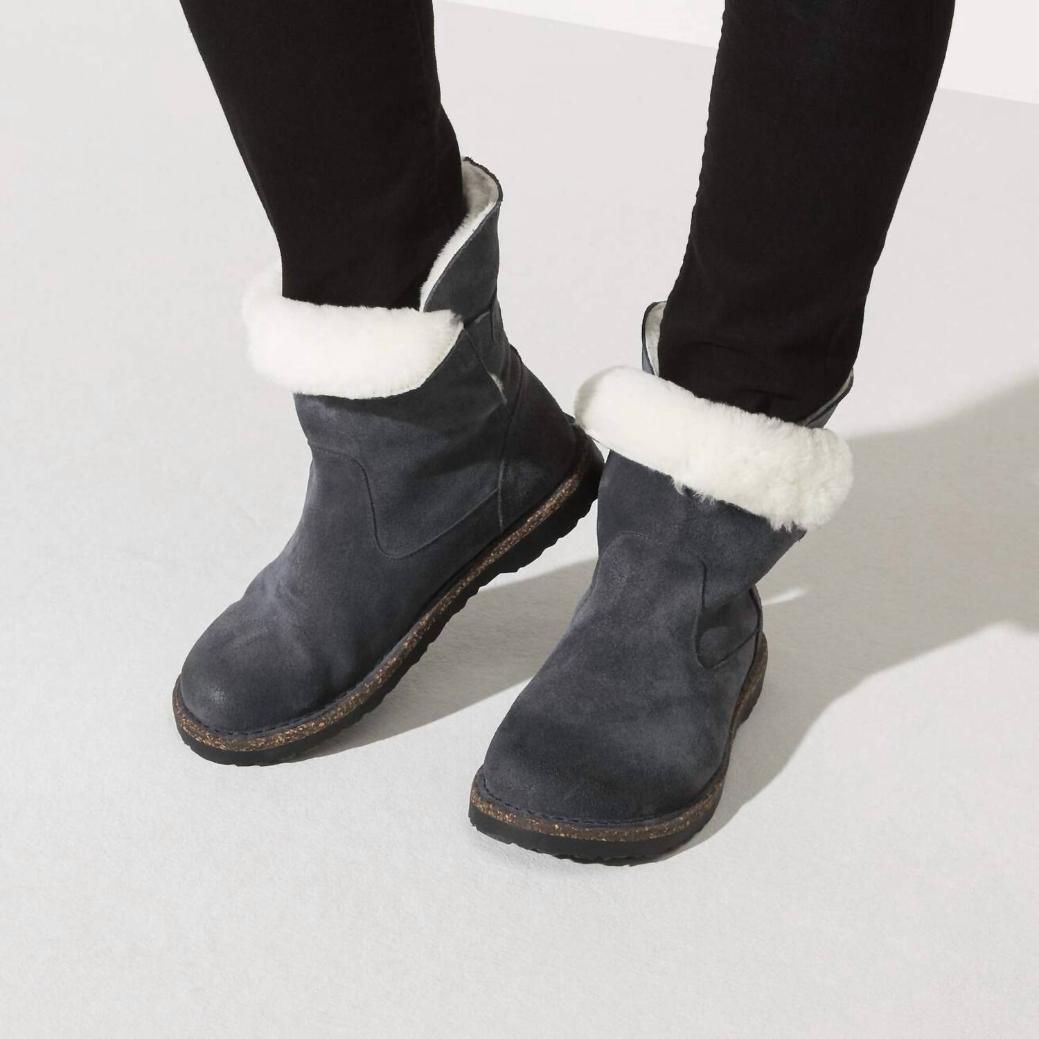 These mid-height boots are lined with real shearling to keep your feet warm and comfy on cold days. The outside is made from super soft suede, and the rubber sole gives you great grip and lasts a long time. Easy to wear and easy to style, they’re perfect for staying warm while still looking good.