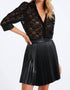 Elevate your wardrobe with the Gisele Lace Blouse by Bishop + Young, a charming take on the classic blouse. Crafted from a blend of 50% Nylon, 40% Cotton, and 10% Spandex, this top showcases a romantic black lace design with quarter sleeves, a V-neckline, and a button front closure. The collared neck adds a touch of sophistication, perfect for pairing with both casual and professional outfits. Ideal for dinner parties or any minimalistic trend outfit.