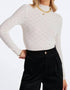 Introducing the Spencer Funnel Neck Top by Bishop + Young, a chic addition to your fall wardrobe in elegant white. This piece boasts long sleeves and a stylish turtleneck, crafted from a textured nylon blend (92% Nylon, 8% Spandex) with intricate sheer white lace detailing. Designed with a modern, body-hugging silhouette, it's finished with a convenient back zip closure for a sleek fit. Care for this sophisticated top with hand wash and line dry instructions to maintain its luxurious appeal.