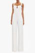 Meet the Sorelle Straight Leg Jumpsuit by Black Halo, a chic addition to any wardrobe in a sleek white hue. This sleeveless jumpsuit features a clean-lined silhouette with a sweetheart neckline and subtle front cutout, complemented by wide shoulder straps. Expertly crafted in the USA from a cotton blend (98% Cotton, 2% Elastane), its relaxed fit in high-waisted straight-leg style elongates any figure and is completed with inseam pockets and a back waist cutout. Closure: Hidden center back zipper. For optimal care, dry clean with care.