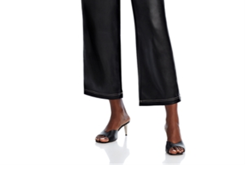 Calças femininas de perna reta | Couro sintético | Cropped | Cintura alta | Calças femininas de cintura alta | Material: 55% poliuretano/15% poliéster | China