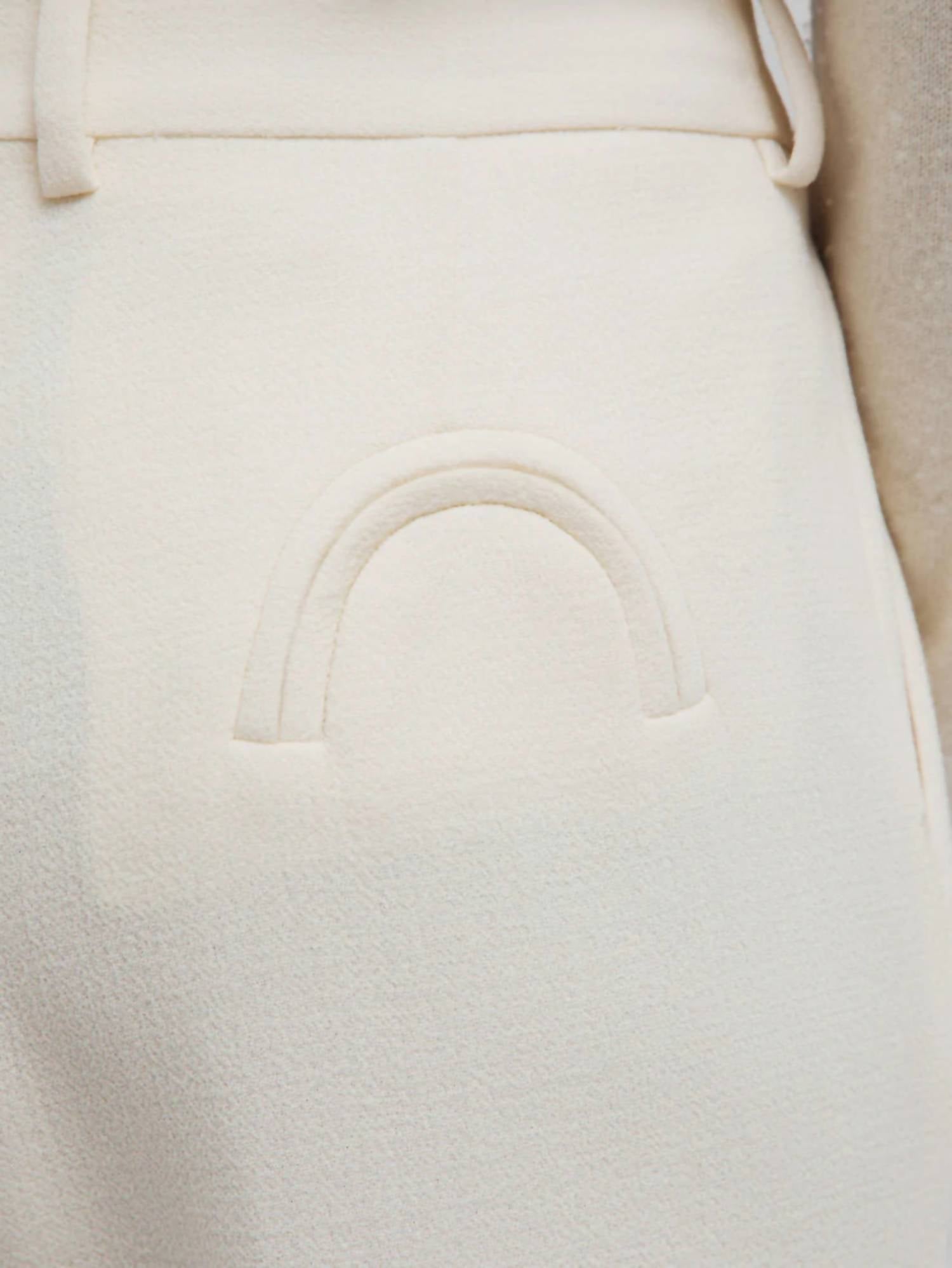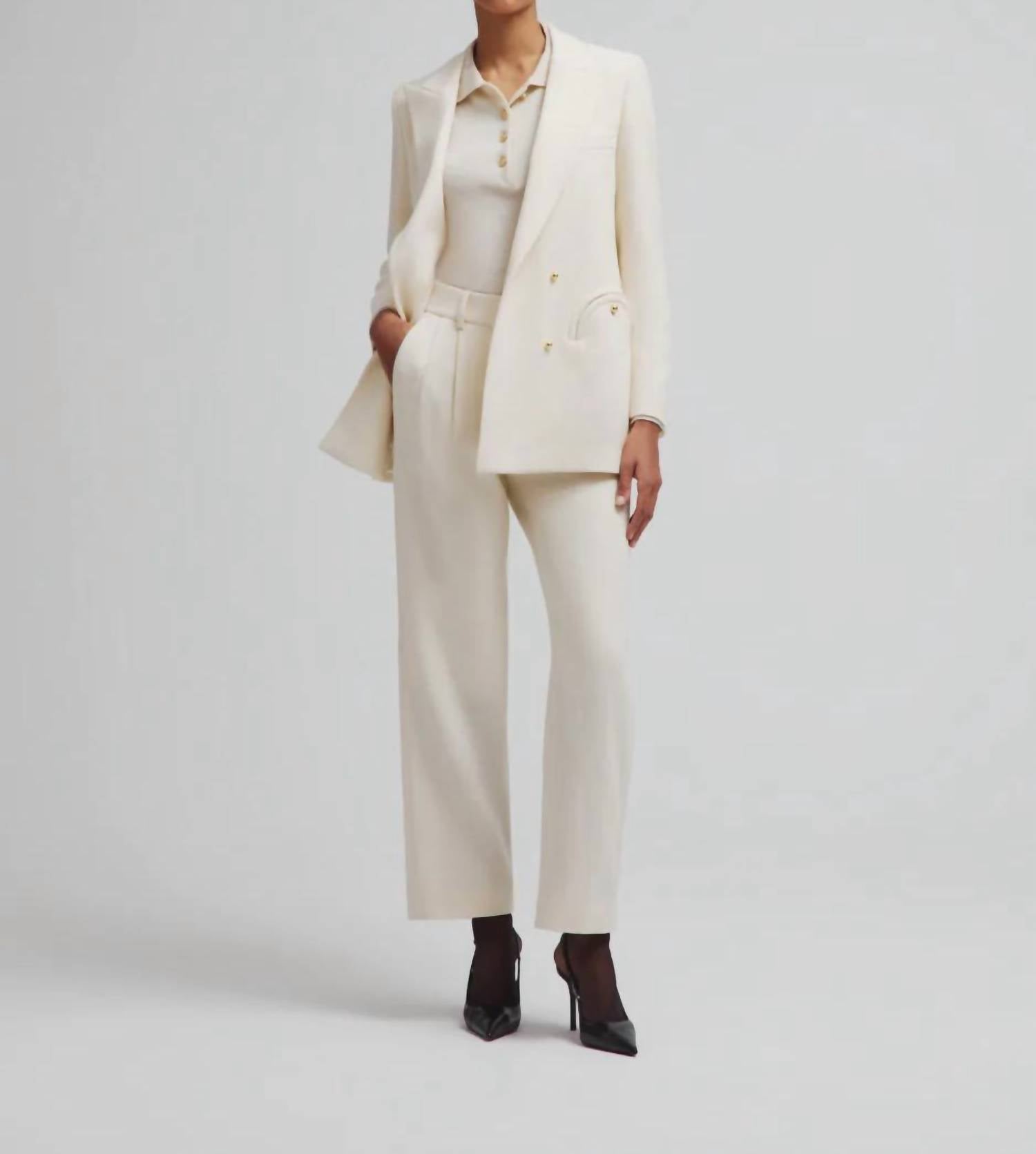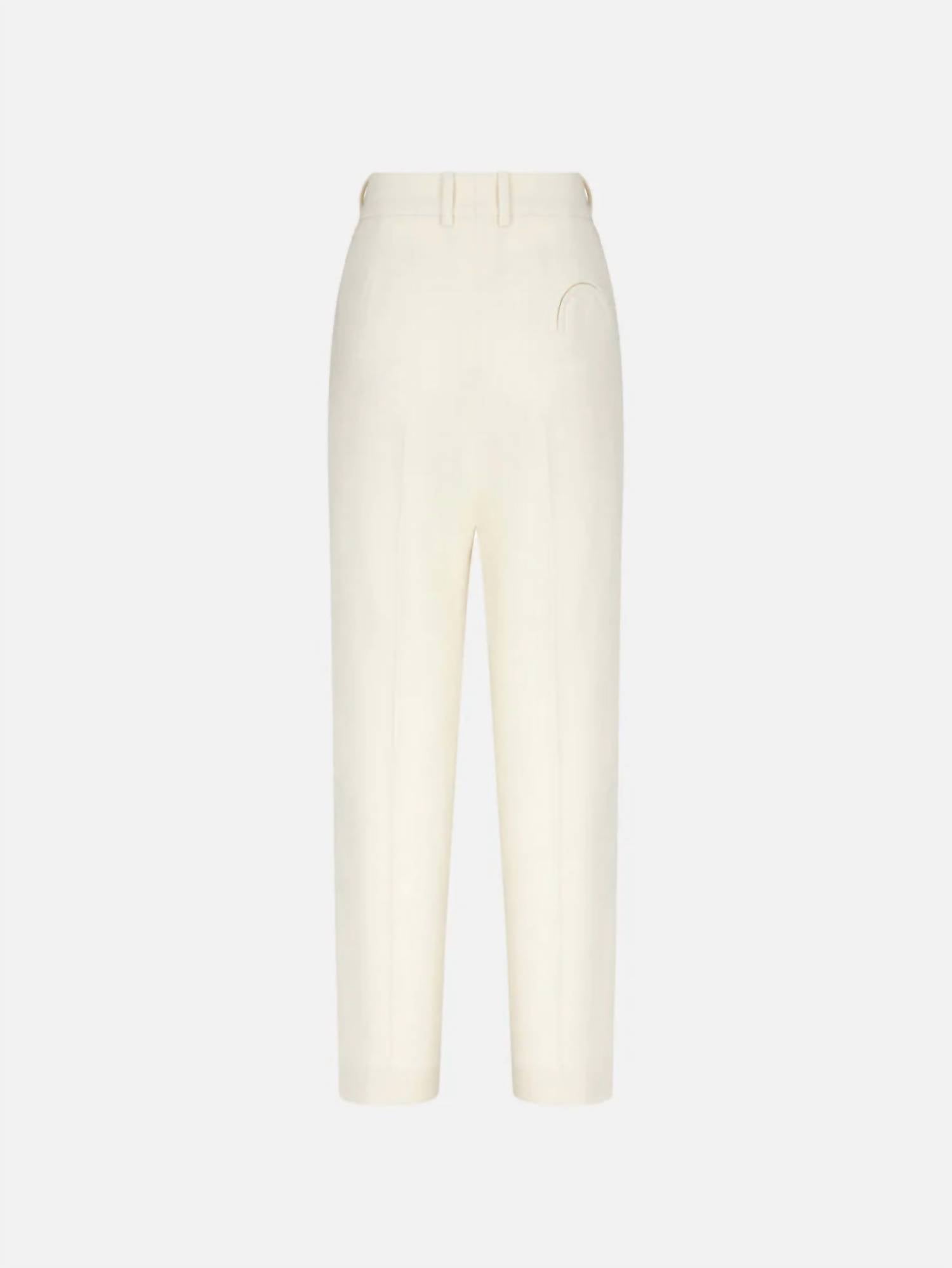 Elevate your wardrobe with the Resolute Fox Pants by Blazé Milano, crafted for sophisticated flair. These wool pants in a versatile cream hue feature a pleated, straight-leg design, perfect for a holiday party occasion. With solid patterning and convenient pockets, they effortlessly blend style and functionality. Made for women who appreciate tailored elegance.