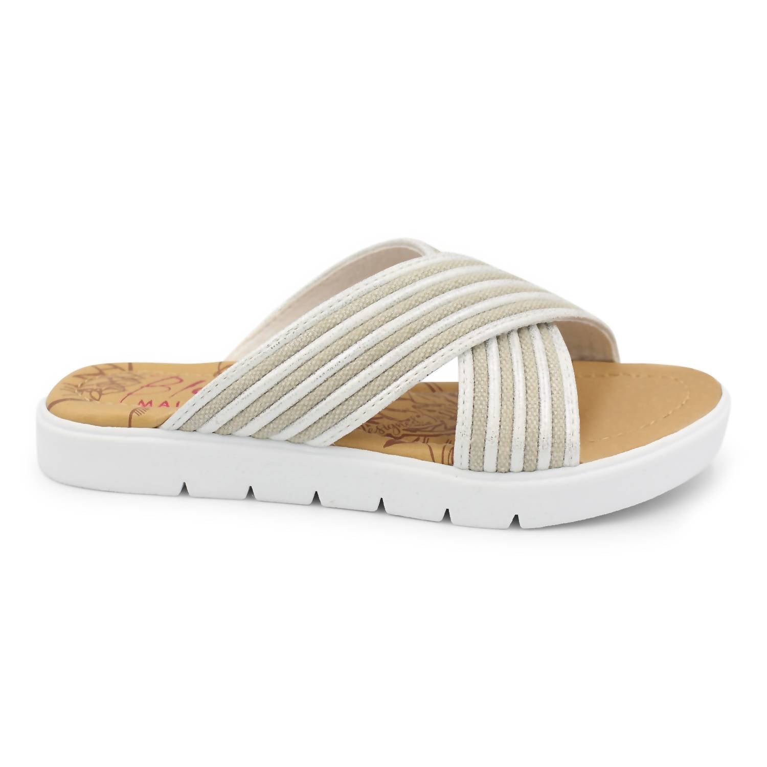 Step into summer with the Kid's Brielle Slide Sandal by BLOWFISH. These playful sandals feature a mix of White Meteorite and Silver Gaucho Canvas colors, perfectly capturing the spirit of sunny days. Designed with a lightly padded footbed, they promise comfort for kids exploring all day long. Originating from expert craftsmanship, these sandals have a medium shoe width and an open toe design, making them an essential addition to any summer wardrobe.