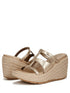 A chic platform sandals featuring a synthetic t-strap upper for a stylish look. Designed for easy slip-on fit and comfort, they include a lightly cushioned footbed for all-day wearability. Complete with a 3-inch espadrille wedge heel for added height and style.
