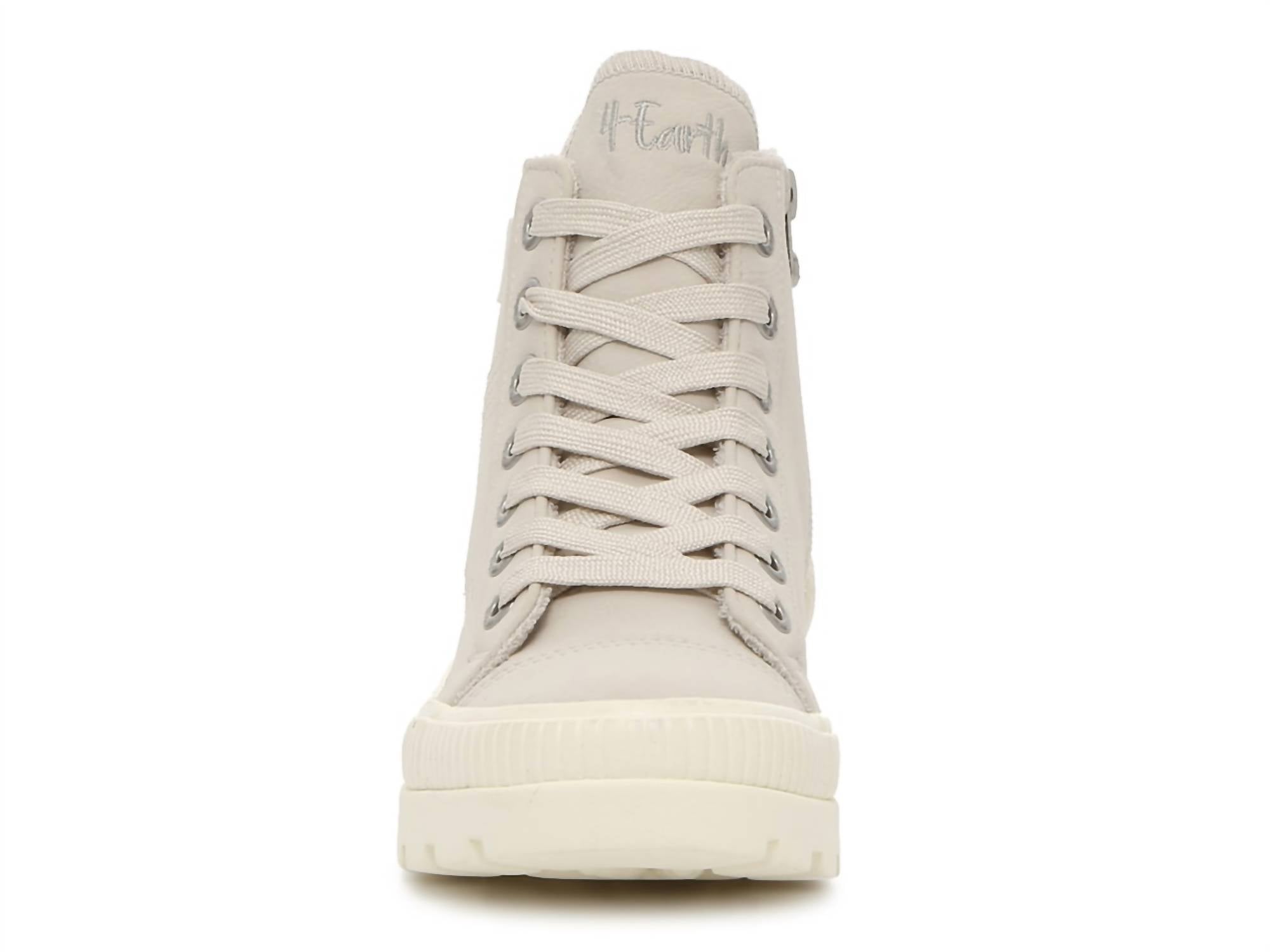 Experimente o conforto casual com um toque moderno com o Tênis Feminino Forever de Cano Alto da BLOWFISH. Projetado com cabedal sintético e um elegante fecho de cadarço, combinado com um zíper interno para facilitar o calce. O tênis tem bico arredondado e é forrado com tecido, garantindo um ajuste confortável com sua palmilha acolchoada. Com salto moldado de 2,2 cm e solado sintético, este tênis na cor taupe promete estilo e praticidade para as aventuras do dia a dia.