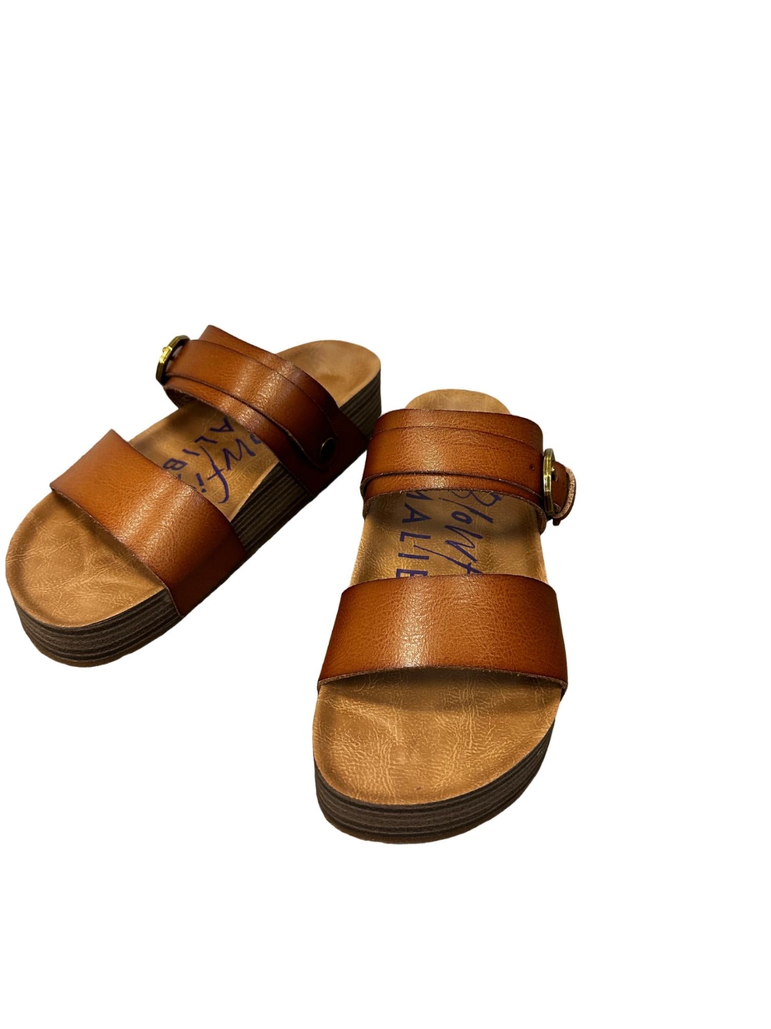 Vestidos fluidos, calças cropped e até macacões... esta sandália combina com todos! Esta sandália plataforma possui tiras ajustáveis, palmilha flexível moldada e design slip-on. Inclui fecho com botão da marca e fivela de metal, confeccionada em cabedal sintético vegano.