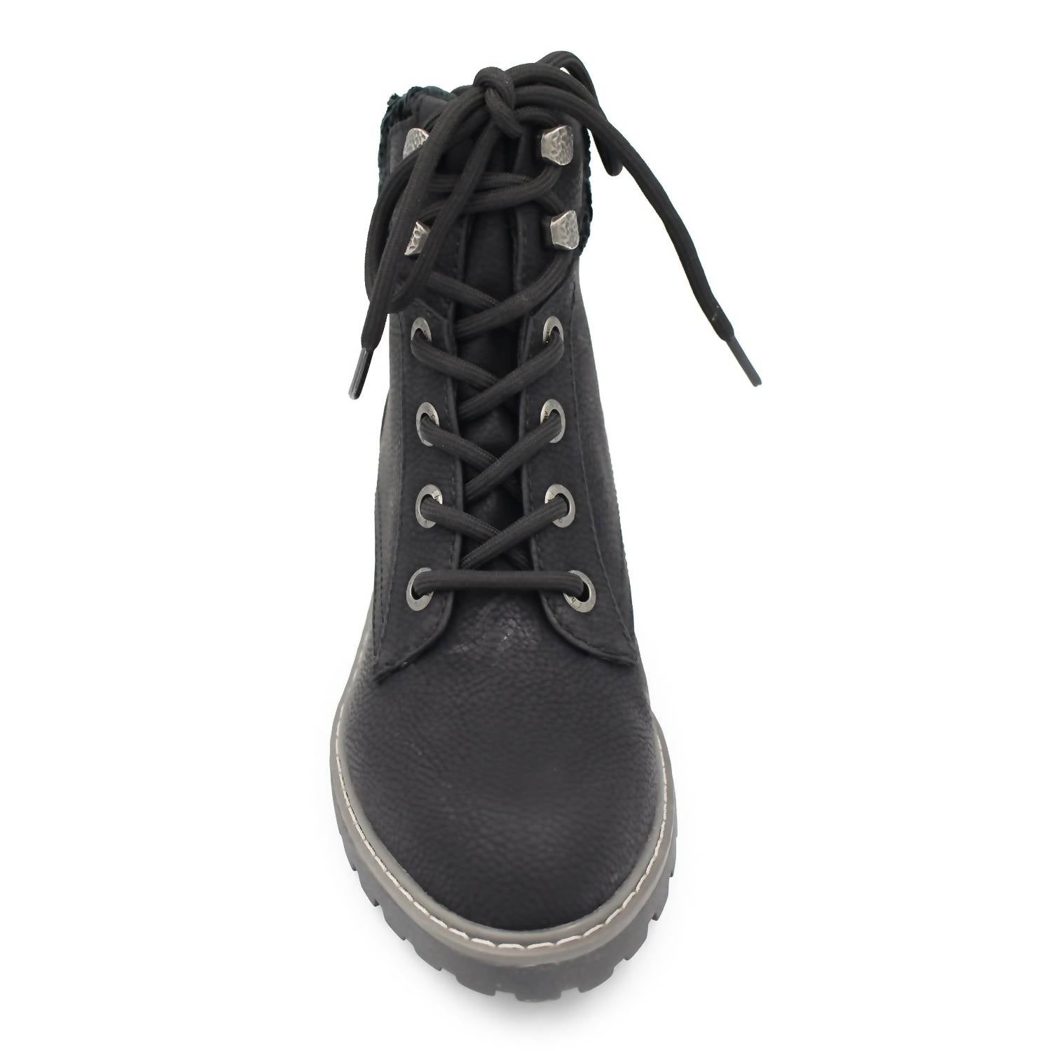 Diga olá à bota perfeita e mais versátil. A altura do tornozelo facilita a transição do dia para a noite. Use-a com sua calça jeans skinny favorita e camiseta para um look mais descontraído, ou combine-a com seu minivestido e jaqueta favoritos para uma saída à noite. A bota Ruthey Combat Cool apresenta um punho de malha extramacia e botões decorativos amassados para aquele toque Blowfish Malibu. Palmilha acolchoada.