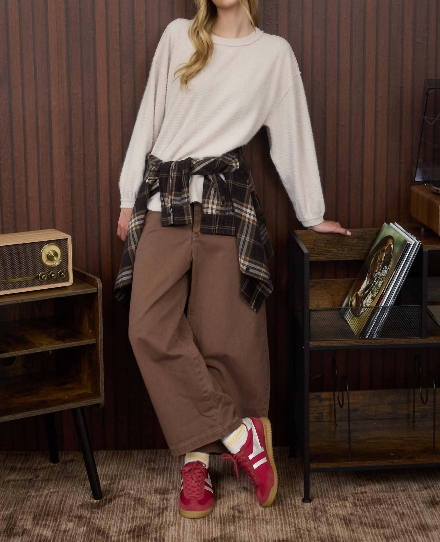 Experience the perfect blend of comfort and style with this trendy crew neck sweater, designed to effortlessly elevate your wardrobe. Pair it with your favorite denim and loafers for the perfect look. Elevate your wardrobe with the Blu Pepper Fuzzy Knit Long Sleeve Top, a perfect fall piece featuring a cozy fuzzy texture in a chic khaki hue. This knit top boasts long sleeves and a stylish drop shoulder design with a round neckline. Made from 95% polyester and 5% spandex, it offers a comfortable fit with a pull-on closure. Ideal for vacation and streetwear trends, this top is a must-have addition to your collection this season.