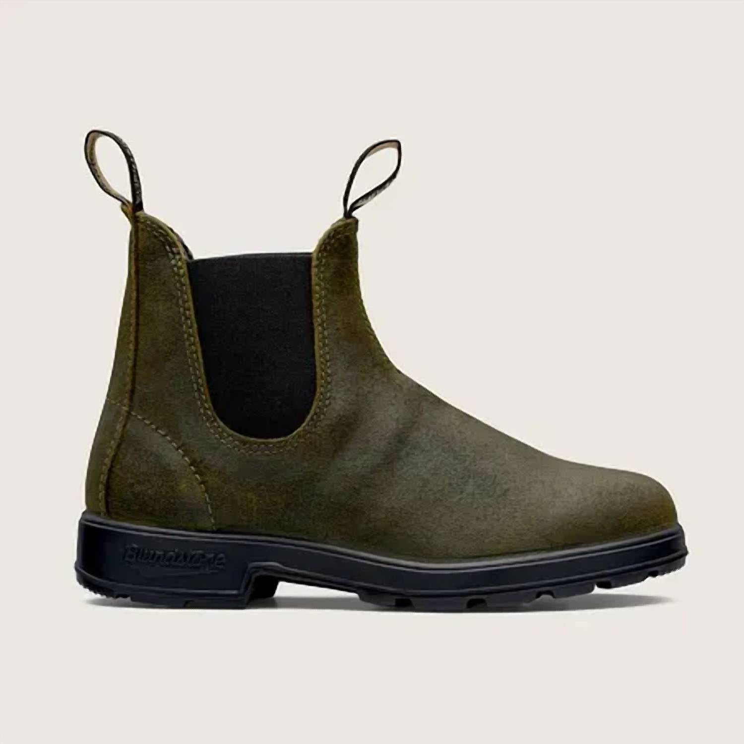 Say hello to the perfect, most versatile boot. The ankle height makes this style easily transition from day to night. Wear them with your favorite skinny jeans and tee for a more laid back look, or pair them with your favorite mini dress and jacket for a night out on the town. The Original #500, now in waxed suede. Legendary Blundstone comfort meets ultra-soft water-resistant suede. One slight change makes a world of difference. - Dark olive water-resistant suede - Black elastic side - Durable TPU outsole - Cushioned midsole for comfort - SPS Max Comfort system for outstanding shock absorption - Removable footbed - Lightweight and comfortable