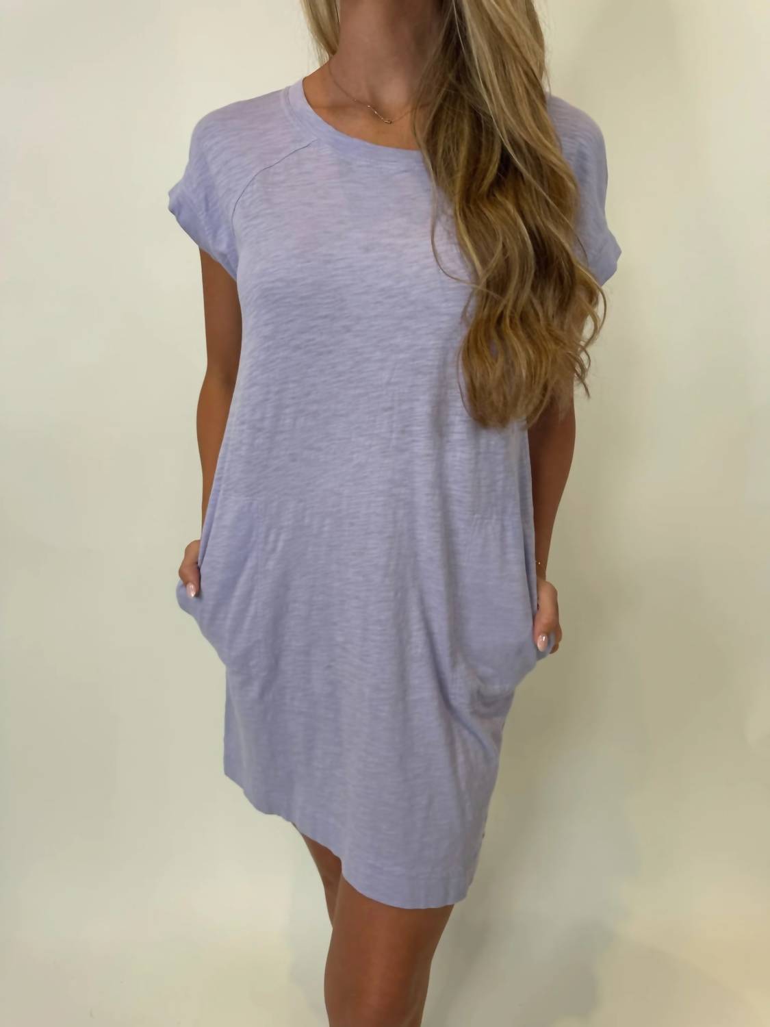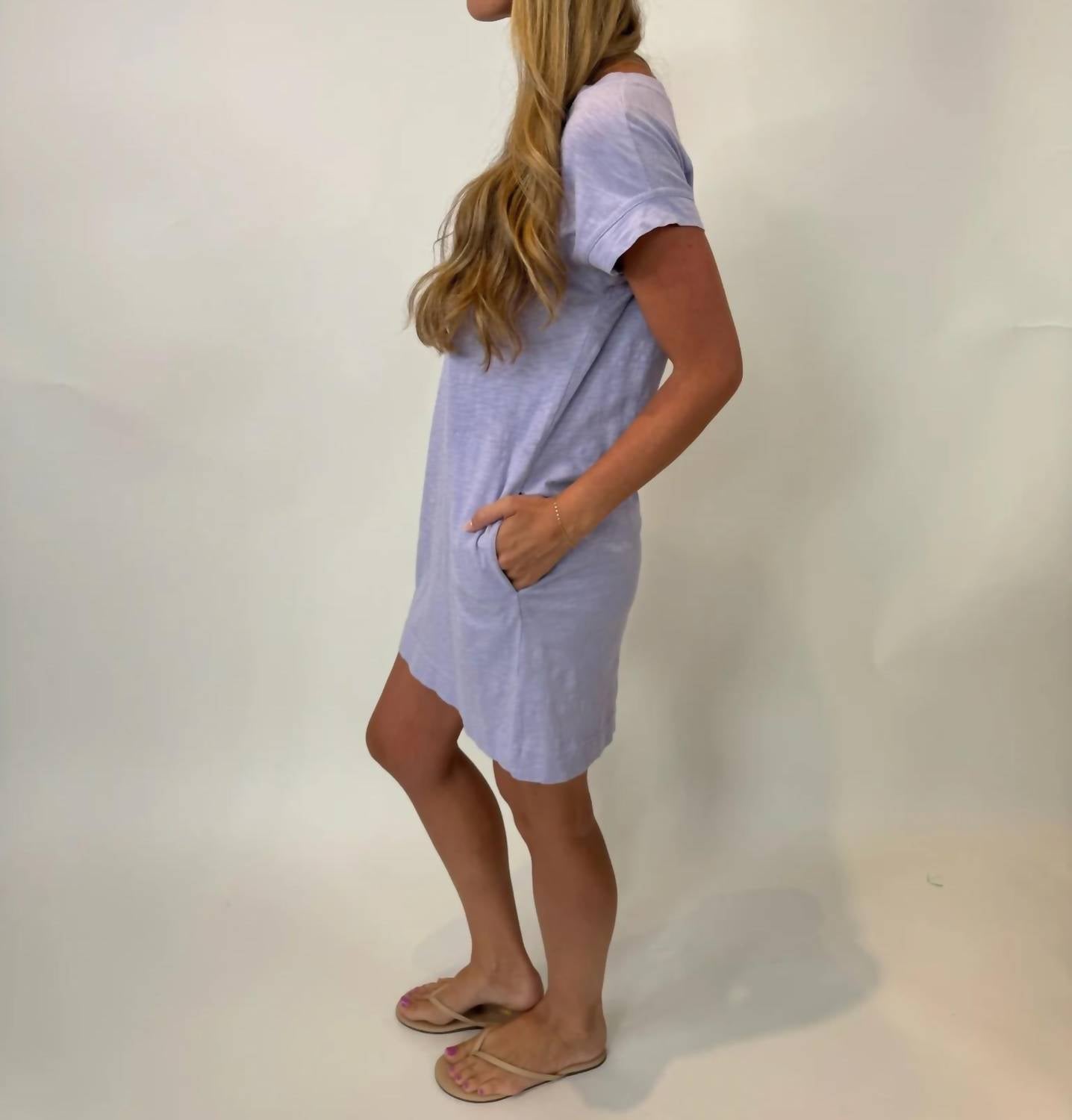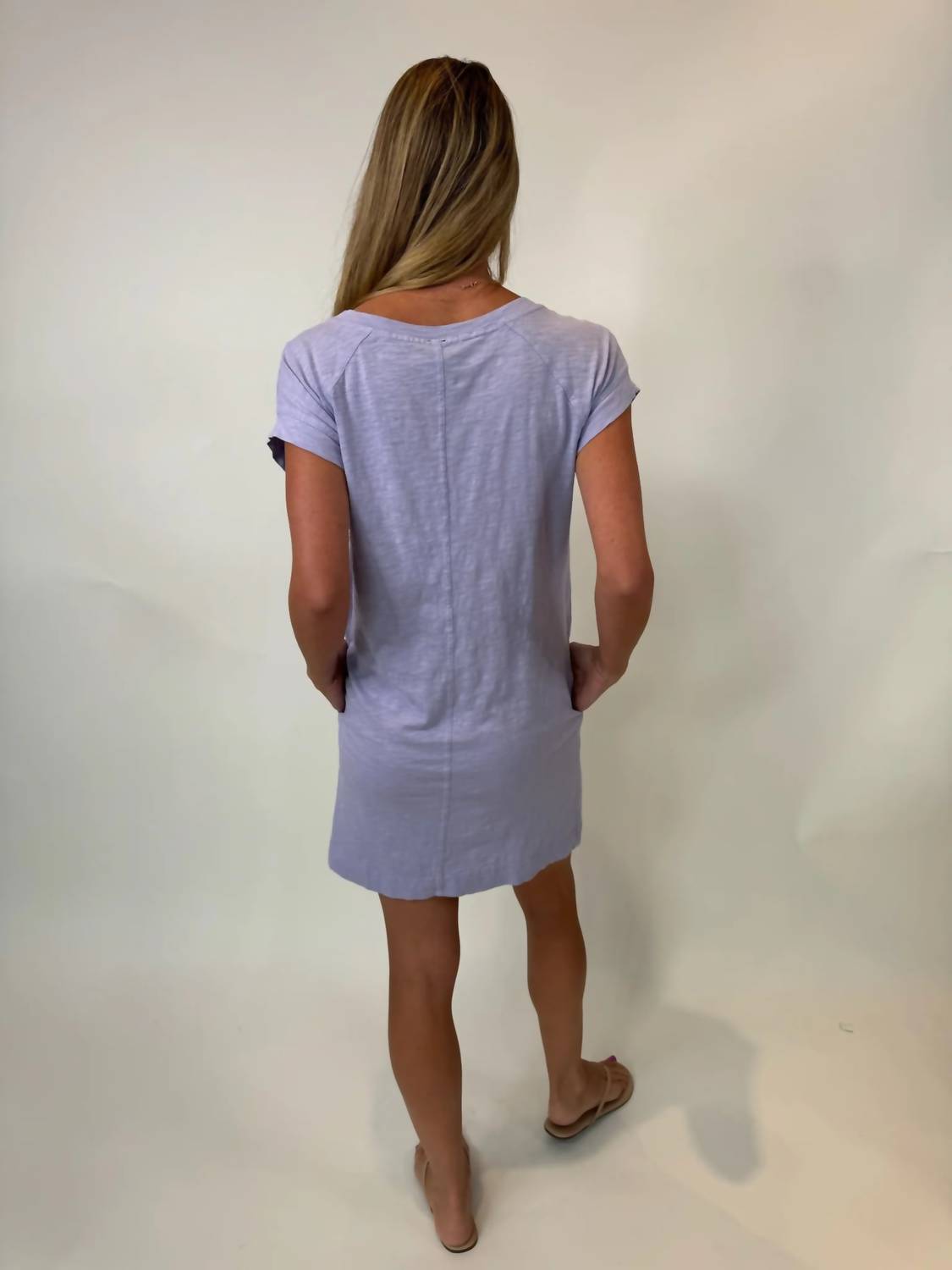 Introducing the Short Sleeve Raglan Mini Dress by Bobi, an ideal choice for effortless style in a light lilac hue. This dress features cuffed short sleeves and is crafted from 100% cotton, offering both comfort and breathability. Designed for versatility and ease, it has a pull-on closure and practical pockets. Care: Machine wash with like colors, tumble dry low, do not bleach, do not dry clean.