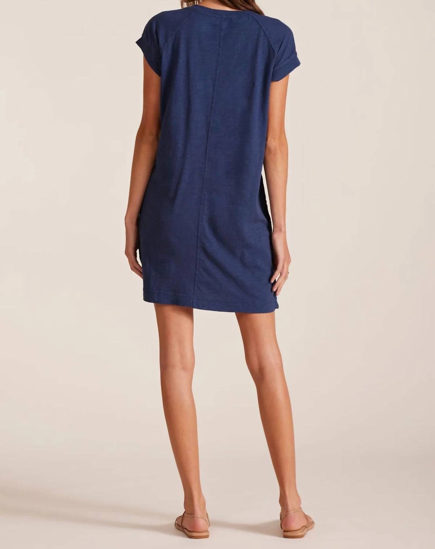 The perfect mini dress for those warmer months. Introducing the Bobi Short Sleeve Raglan Mini Dress in Pacific Blue, an effortless blend of style and convenience for any occasion. This mini dress, designed with cuffed short sleeves and a crewneck silhouette, is crafted from 100% cotton for ultimate comfort. With a pull-on closure type, it features a solid pattern and yes, it comes with pockets, making it both practical and chic. Care for this piece is easy: machine wash with like colors, tumble dry low, and avoid bleach or dry cleaning.