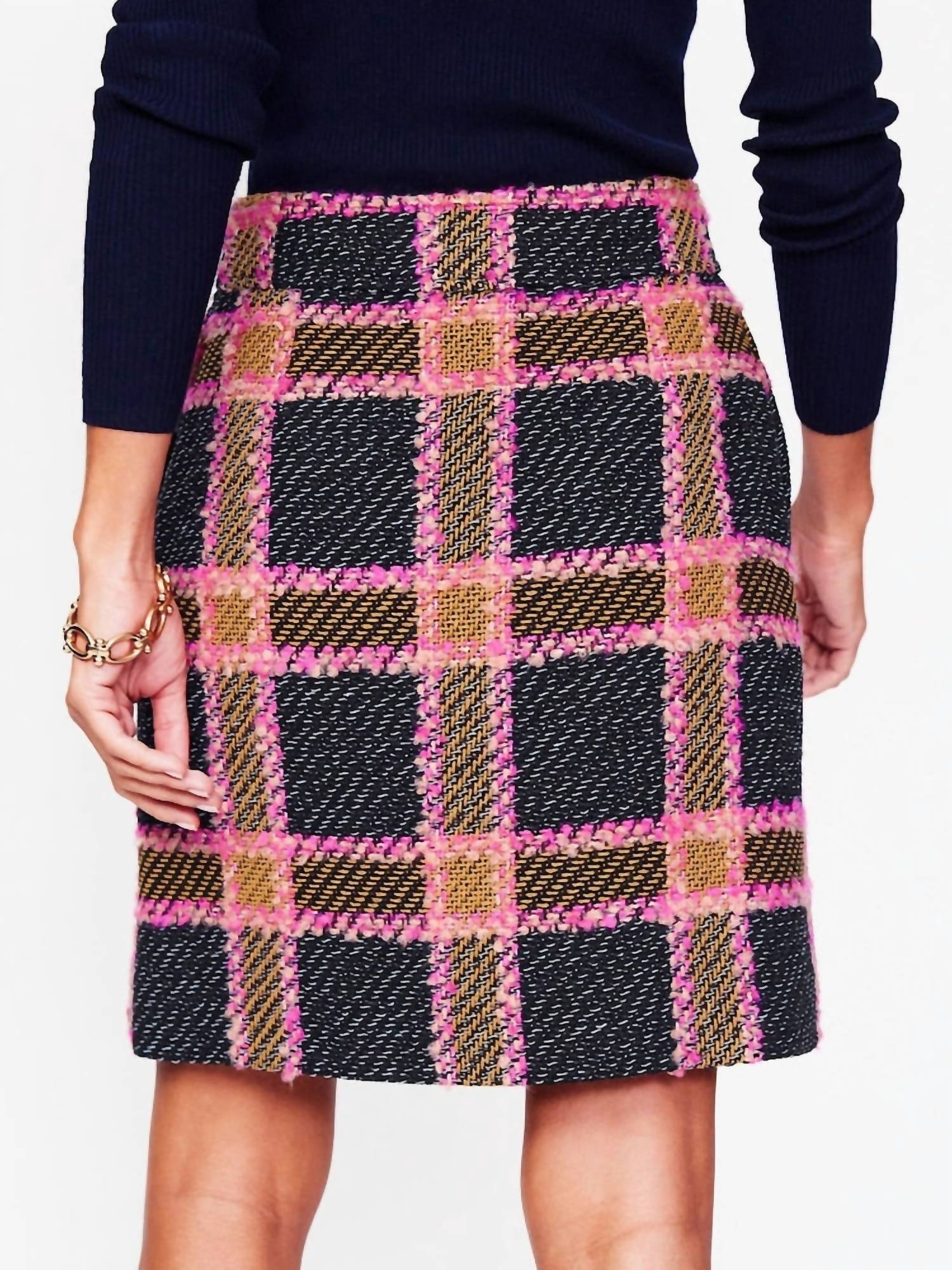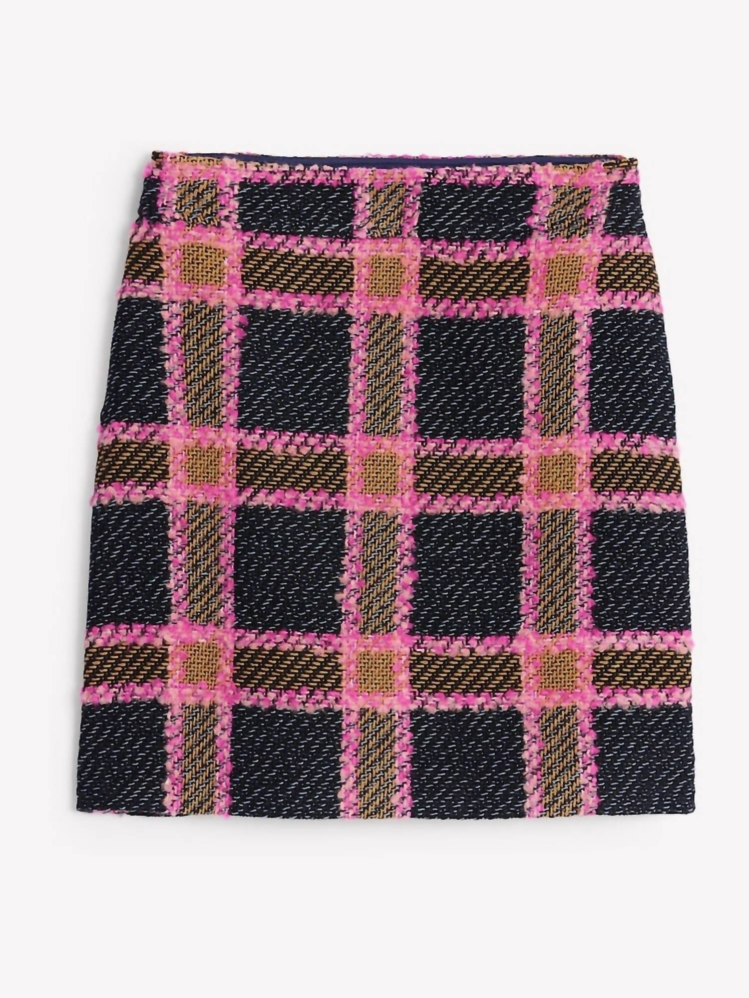 Introducing the Estella Check Mini Skirt by Boden, a chic addition to your wardrobe with its sophisticated plaid design. This A-line skirt is crafted from a premium wool blend comprising 75% Wool, 24% Nylon, and 1% Cashmere, ensuring a midweight feel perfect for cooler days. Ideal for women seeking both style and comfort, it features a mid-rise waist and practical pockets. For best results, dry clean only.