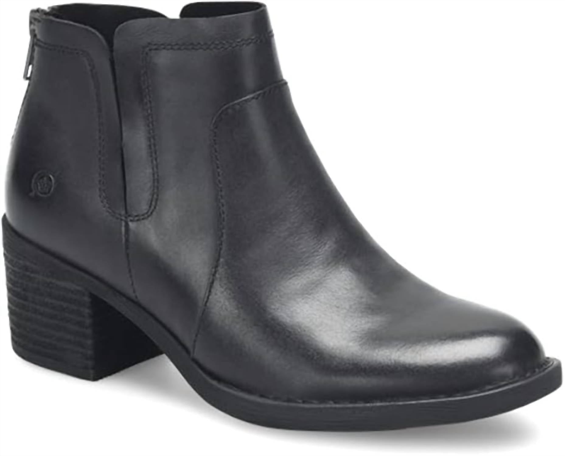 Say hello to the perfect, most versatile boot. The ankle height makes this style easily transition from day to night. Wear them with your favorite skinny jeans and tee for a more laid back look, or pair them with your favorite mini dress and jacket for a night out on the town. Elevate your evening ensemble with the Women's Reece Boots by BONDI BORN, an exquisite choice for any spring event. These stylish black ankle boots feature an almond toe and a mid-height block heel, perfect for a comfortable yet chic look. Their monochrome design adds a modern twist, seamlessly fitting into your wardrobe. Ideal for evening occasions, these boots are a must-have addition for those seeking both form and function.