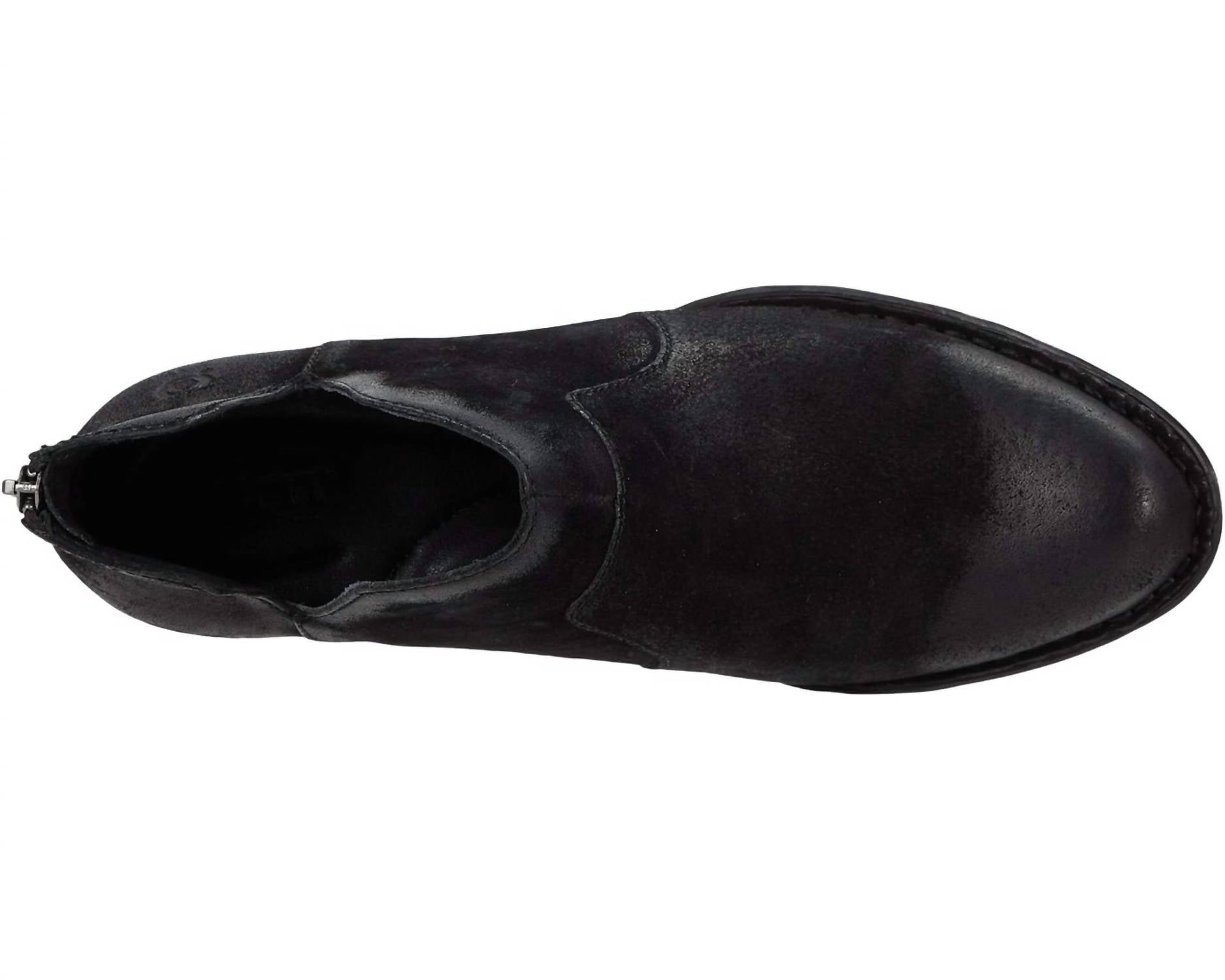 Uma bota estilosa com ajuste confortável e altura ideal. Estas botas clássicas são o complemento perfeito para qualquer look e podem ser usadas em qualquer estação. Entre no estilo com a bota feminina Kerri da Born, confeccionada em couro premium com um elegante acabamento preto envelhecido. Elas ostentam um toque western clássico, bico amendoado e um prático zíper traseiro para facilitar o calce. O interior confortável conta com forro em couro e tecido, além de uma palmilha totalmente acolchoada, tudo isso sobre um solado de borracha durável com salto bloco revestido em madeira de leawood de 3,8 cm. Versáteis e confortáveis, estas botas são perfeitas para a mulher moderna.